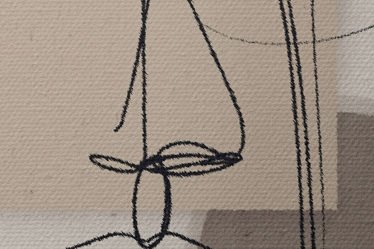 Ronde schilderijen Lijnportret boven beige geometrische vormen Nr r45886