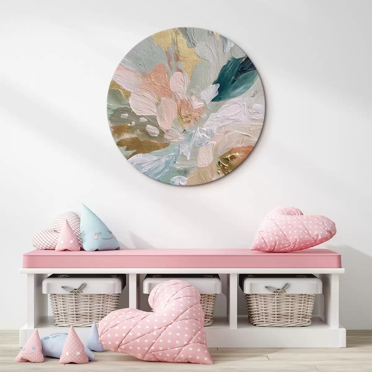 Ronde schilderijen Pastelkleurige bloemenstrepen met gele spikkels r45899