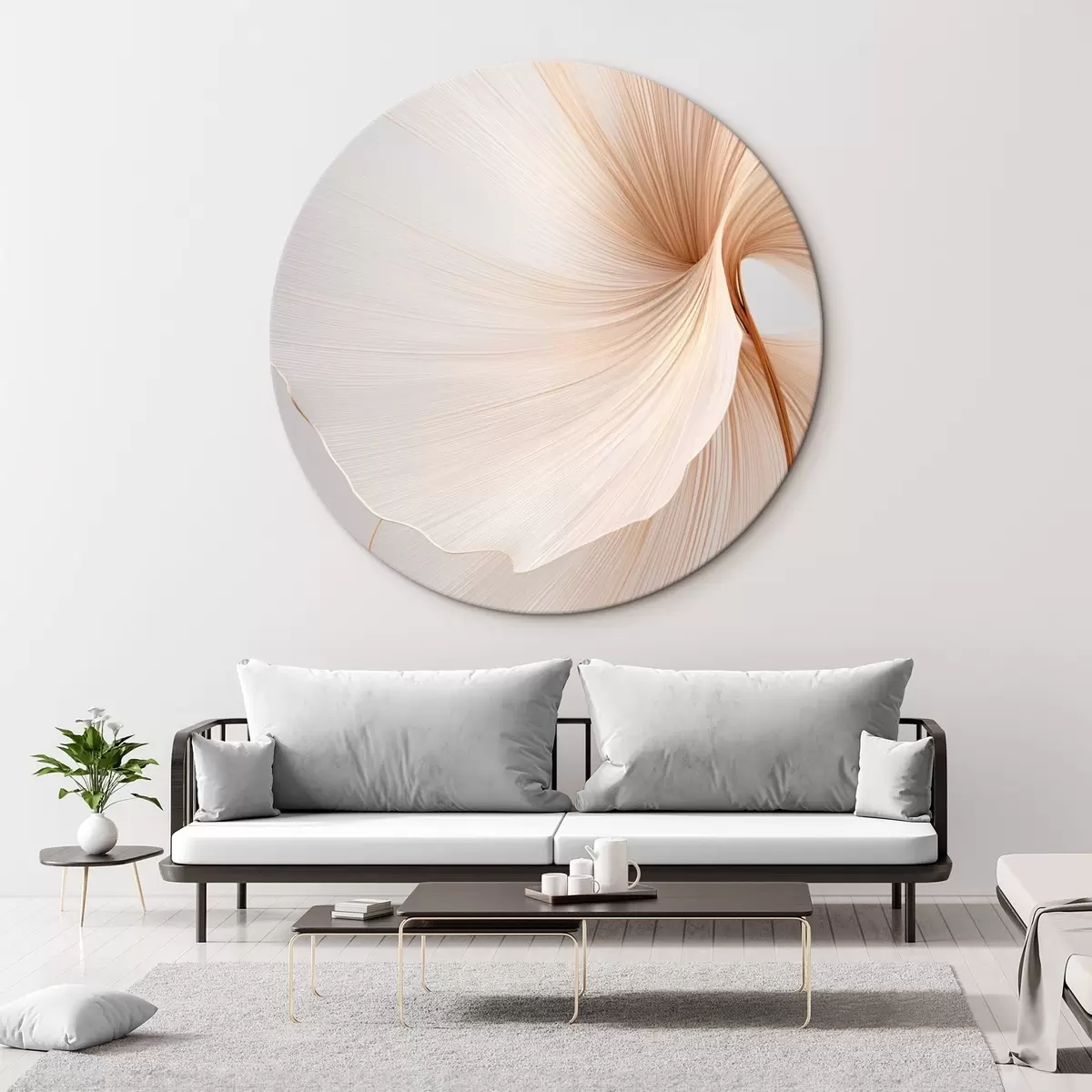 Ronde schilderijen Abstracte bloemen met dunne, delicate bloemblaadjes in witte en beige tinten Nr r45922