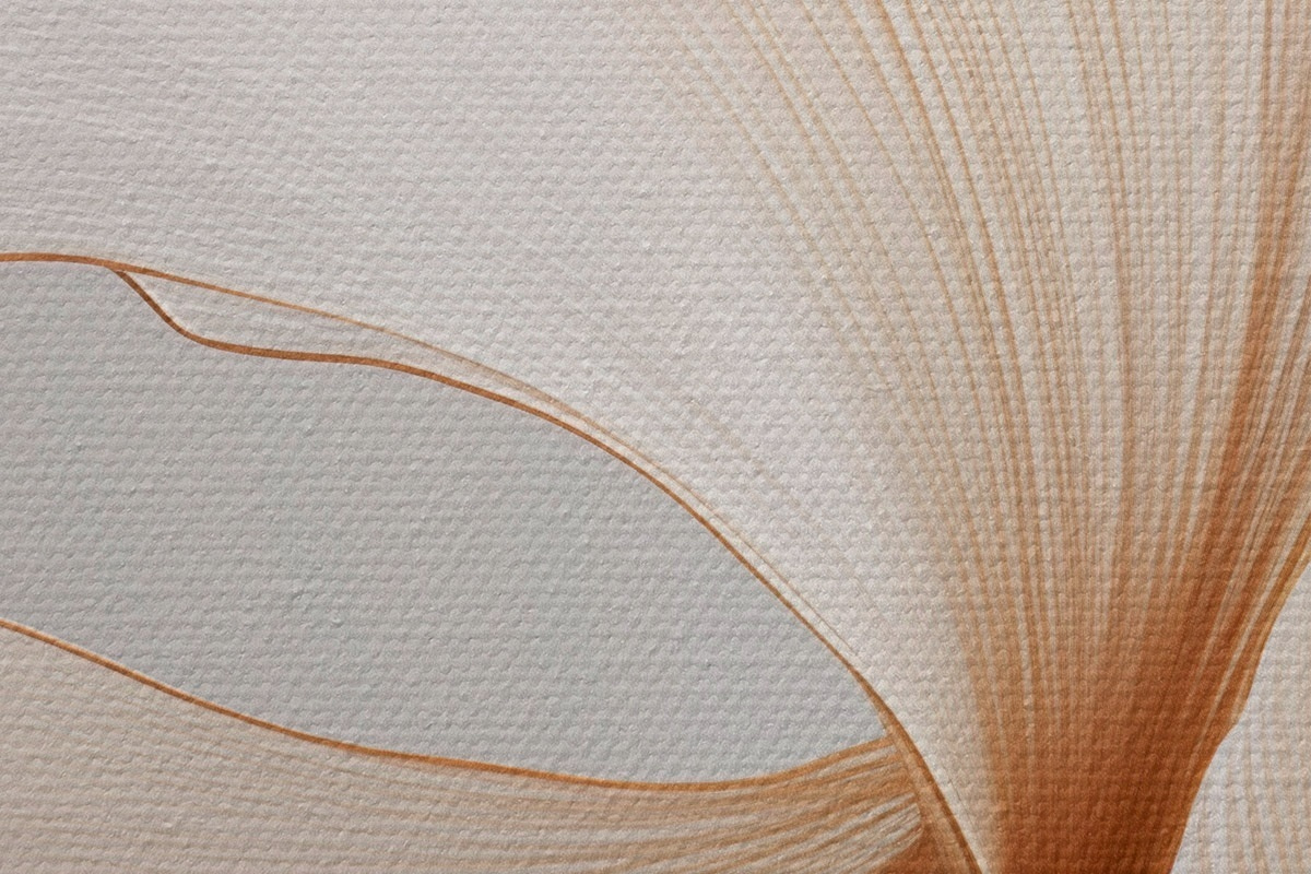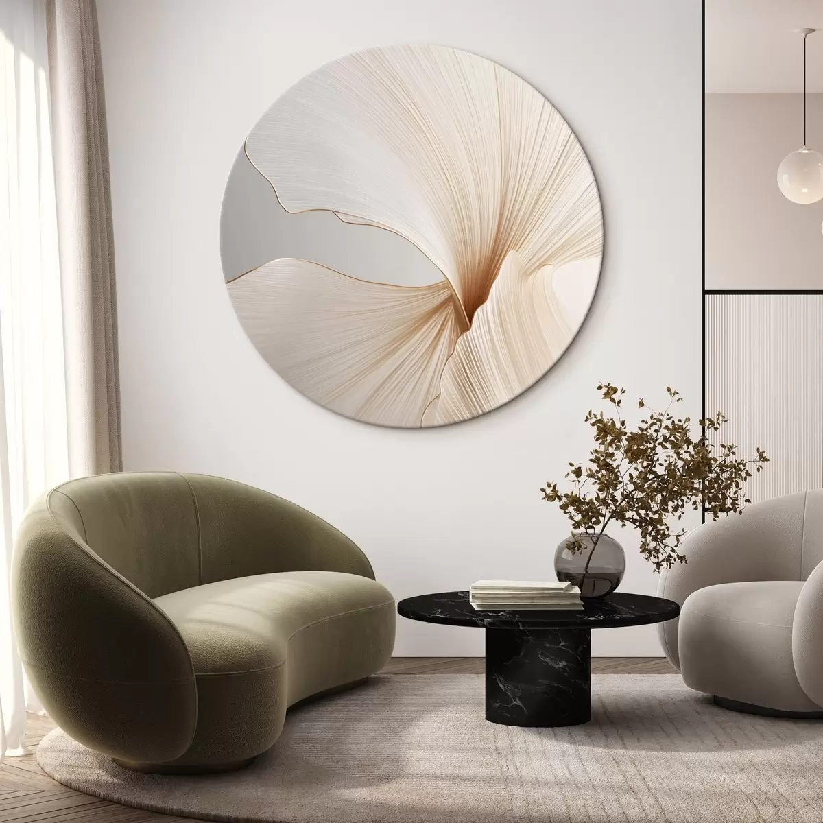 Ronde schilderijen Abstracte bloemen met dunne, delicate bloemblaadjes in witte en beige tinten Nr r45923