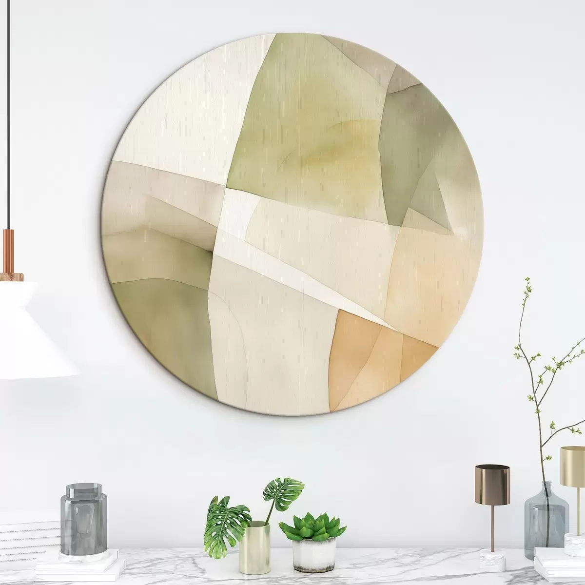 Ronde schilderijen Abstracte geometrische vormen met waterverftextuur in tinten groen, bruin en beige r45928