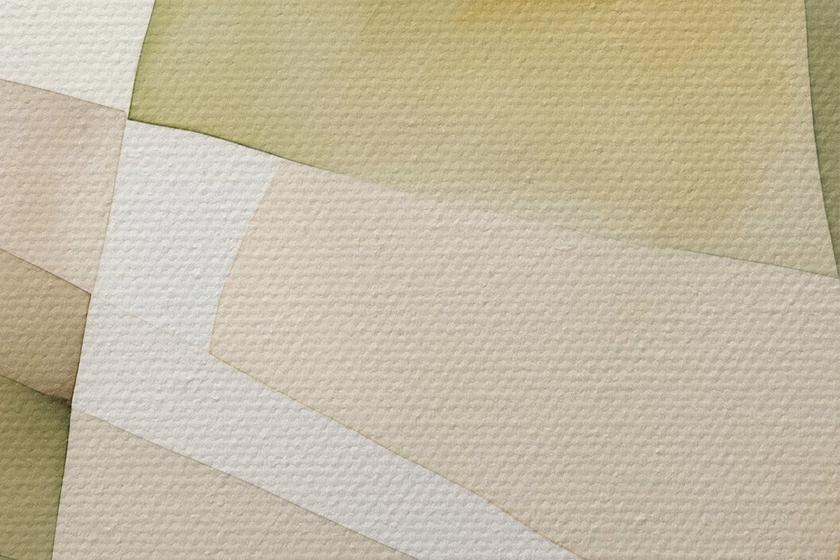 Ronde schilderijen Abstracte geometrische vormen met waterverftextuur in tinten groen, bruin en beige Nr r45928