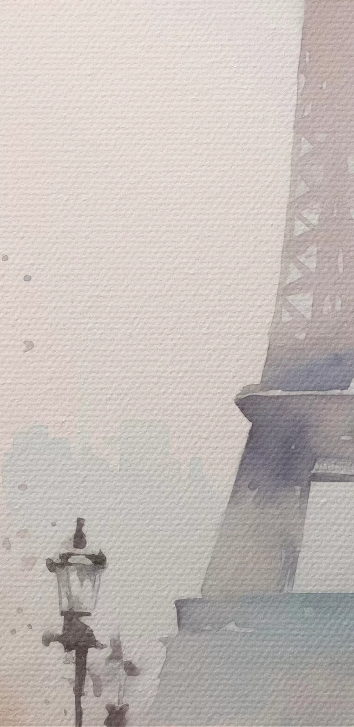 Ronde schilderijen Een regenachtige dag in Parijs met de Eiffeltoren op de achtergrond en vintage straatlantaarns Nr r45930