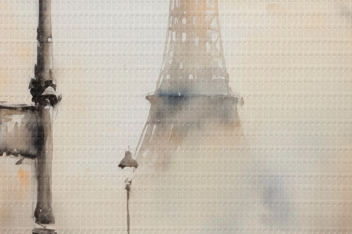 Ronde schilderijen Een regenachtige herfstdag in Parijs met de Eiffeltoren op de achtergrond en vintage straatlantaarns Nr r45931