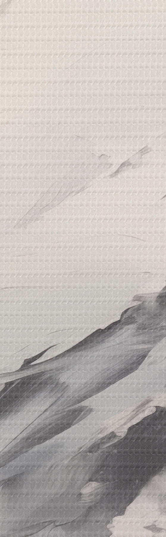 Ronde schilderijen Besneeuwde bergtoppen met grijze schaduwen, grijze lucht, penseelstreken, gestructureerd, minimalistisch Nr r45932