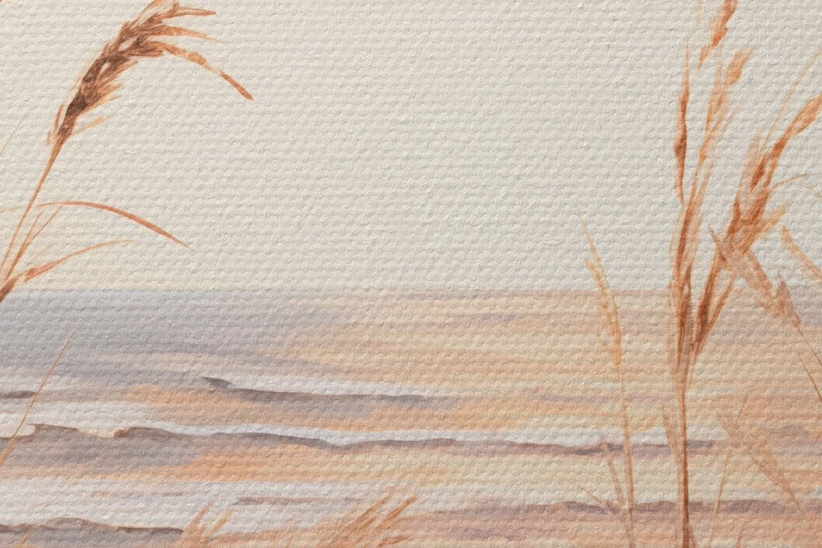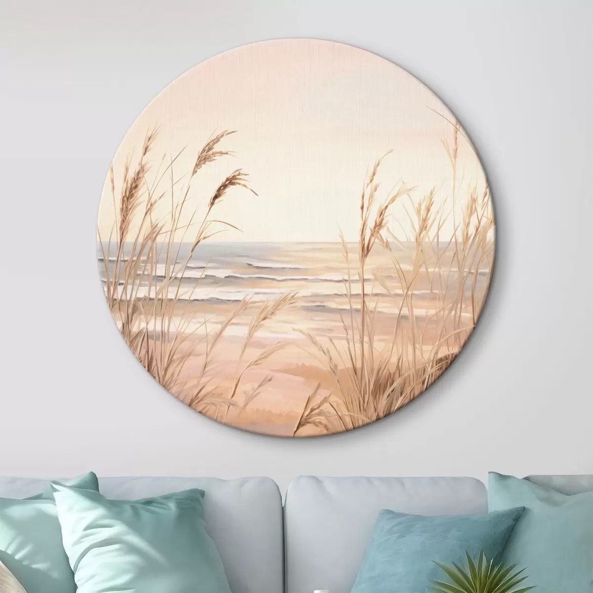 Ronde schilderijen Pampagras met pasteloranje kleurenpalet, lichtroze lucht, een rustig landschap Nr r45935