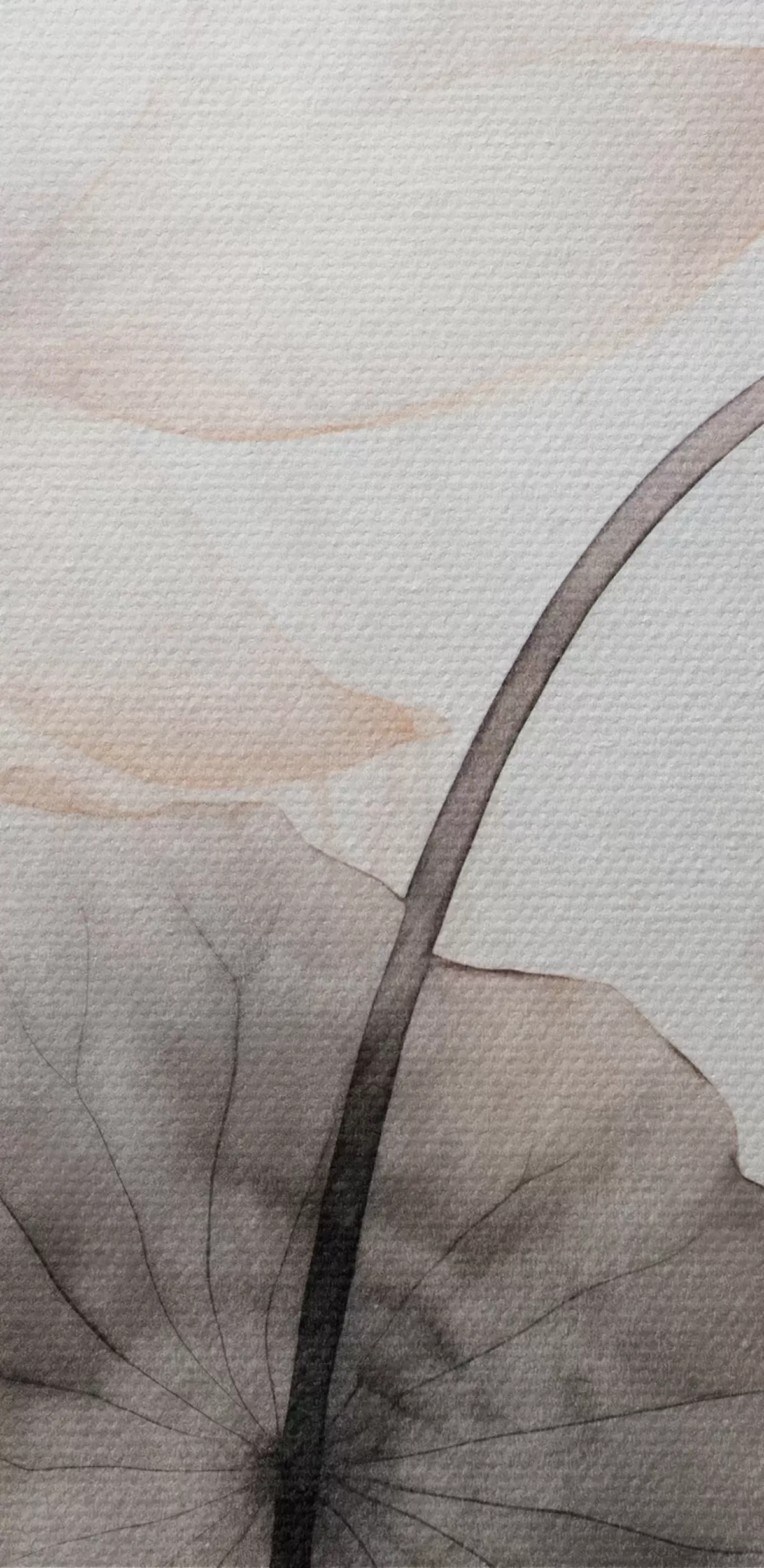 Ronde schilderijen Witte lotusbloemen met textuur en donkere bladeren, lichte achtergrond, minimalistisch ontwerp Nr r45937