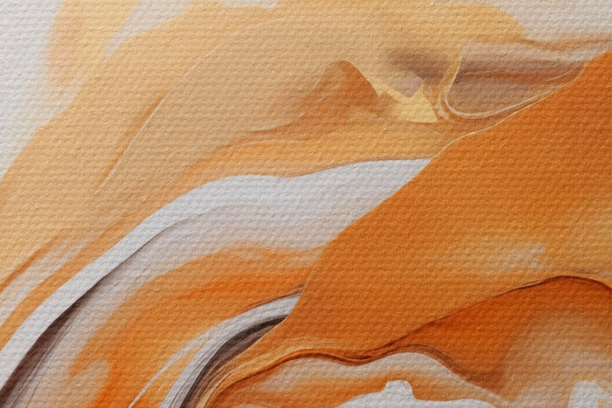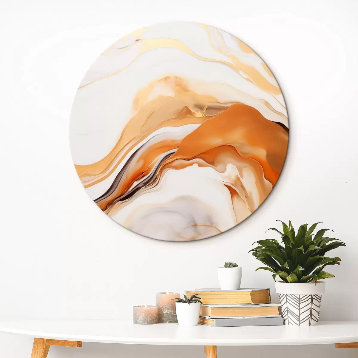 Ronde schilderijen Abstracte schilderkunst imitatie met vloeiende vormen in tinten wit, oranje en bruin, minimalistisch Nr r45938