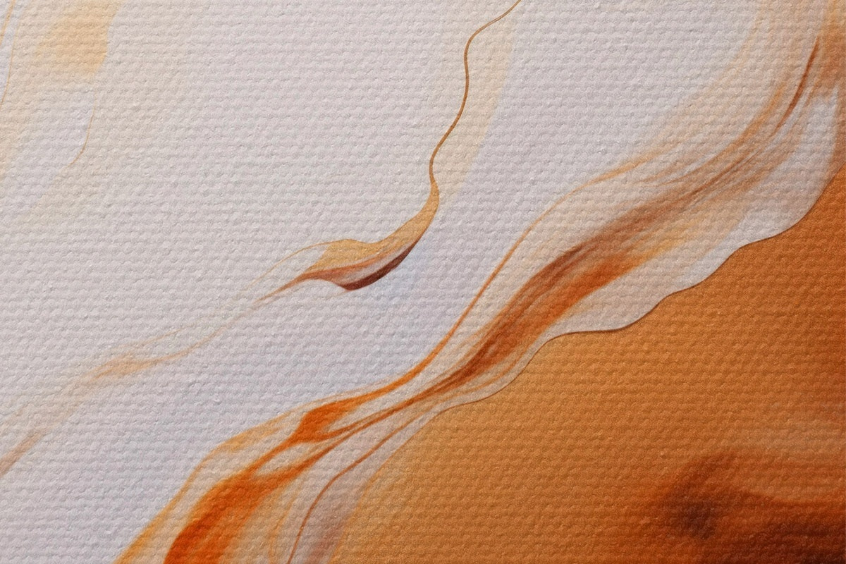 Ronde schilderijen Abstracte schilderkunst imitatie met witte en oranje kleuren, vloeiende kunst met golvende lijnen, moderne kunst Nr r45939