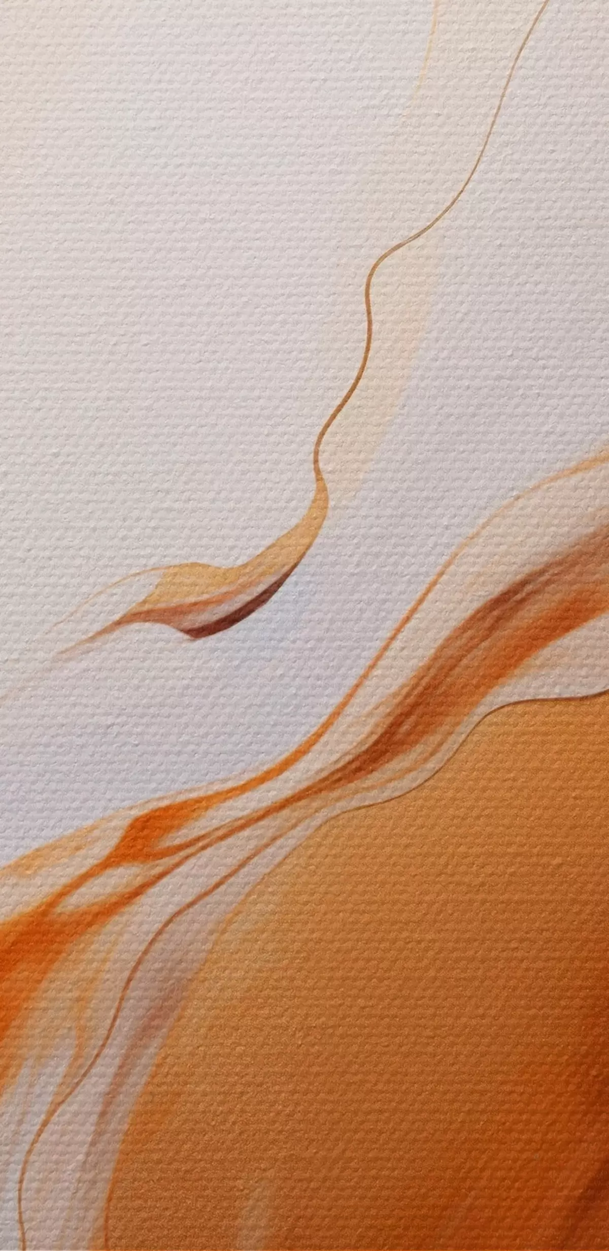 Ronde schilderijen Abstracte schilderkunst imitatie met witte en oranje kleuren, vloeiende kunst met golvende lijnen, moderne kunst Nr r45939
