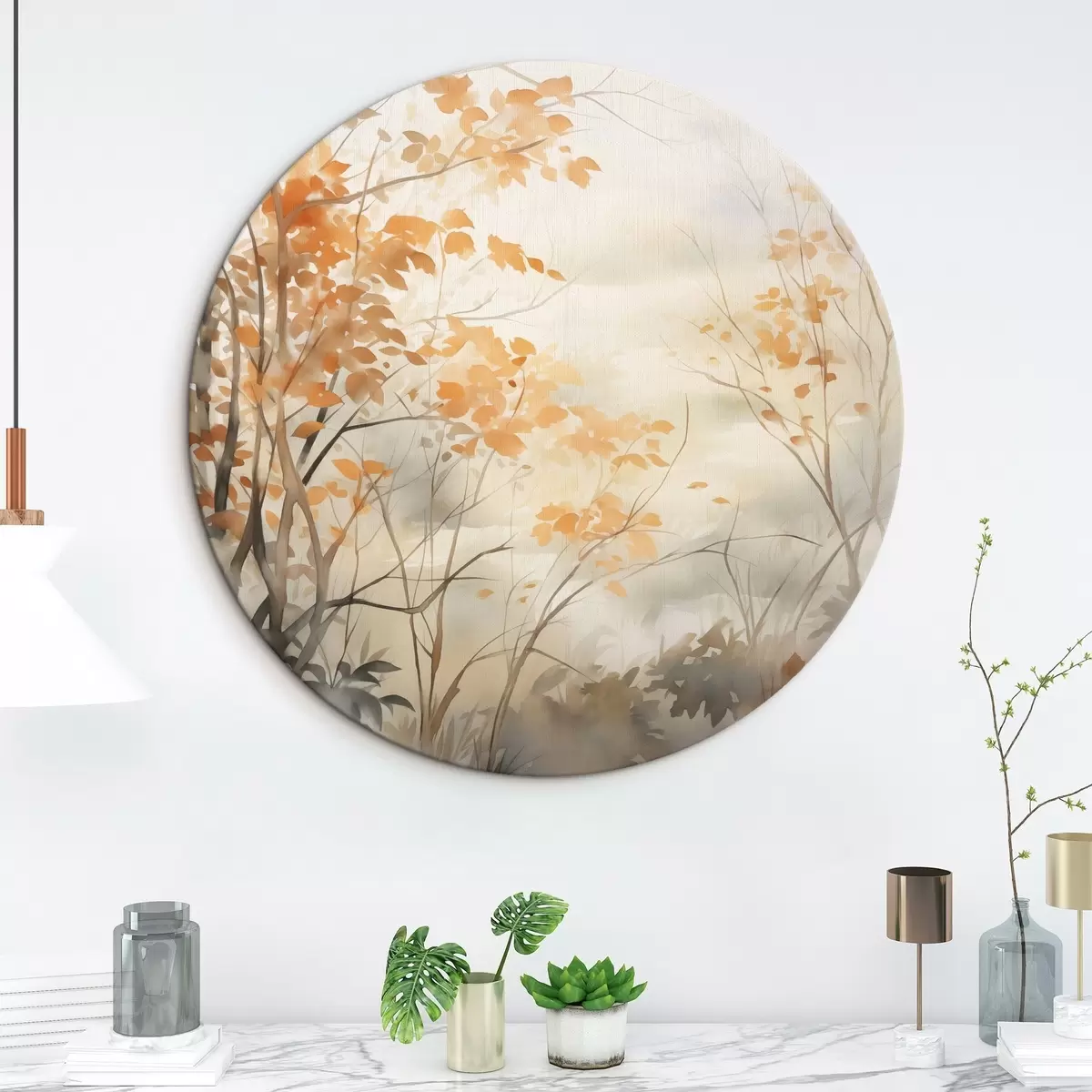 Ronde schilderijen Herfstbomen met oranje bladeren en takken, zachte aquarelstijl, delicate penseelstreken r45941