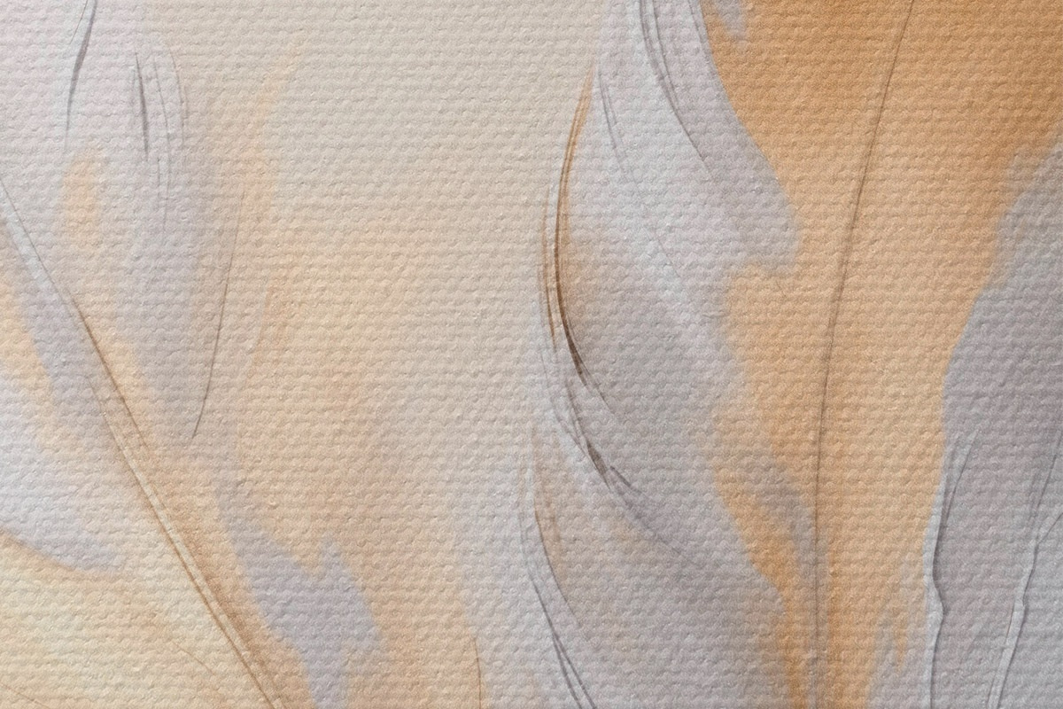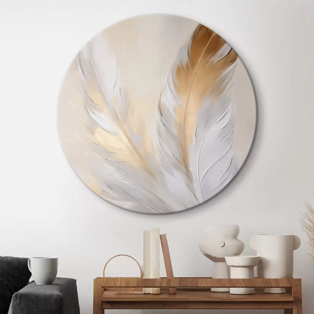 Ronde schilderijen Veren met oranje accenten, zachte verlichting, minimalistische compositie met textuur, moderne kunst Nr r45944