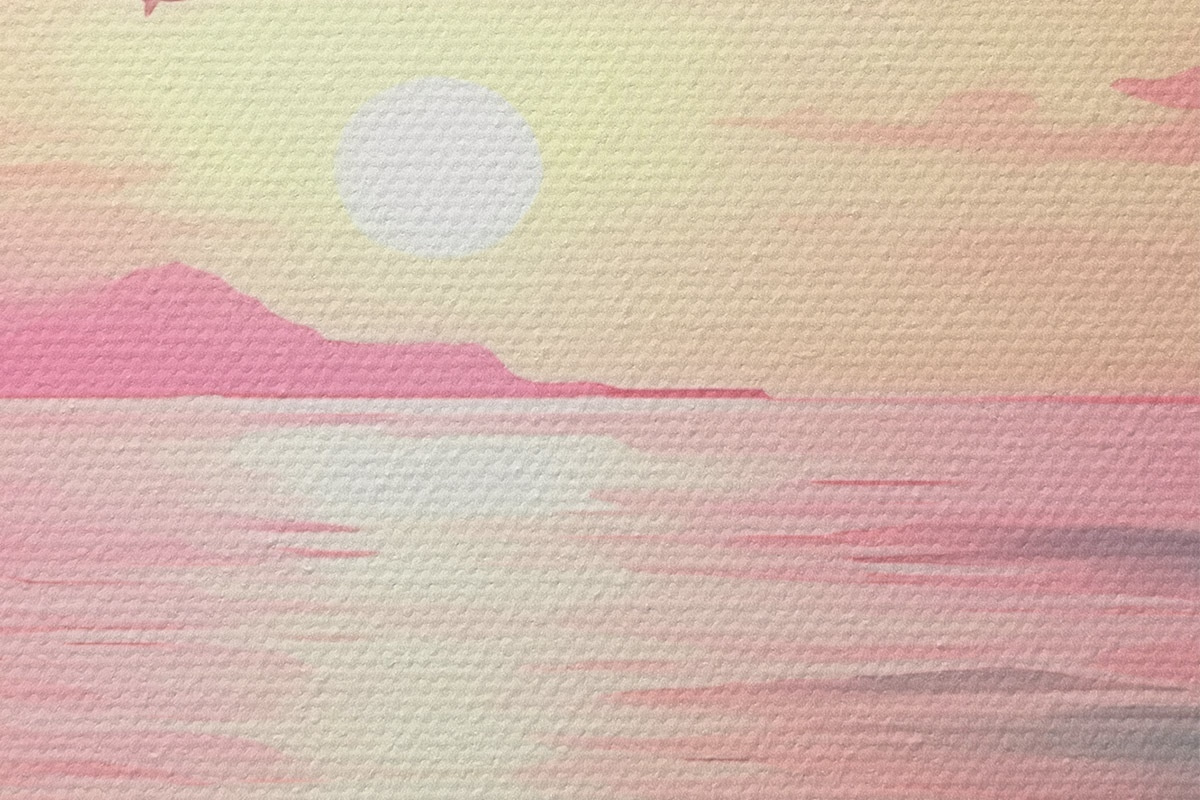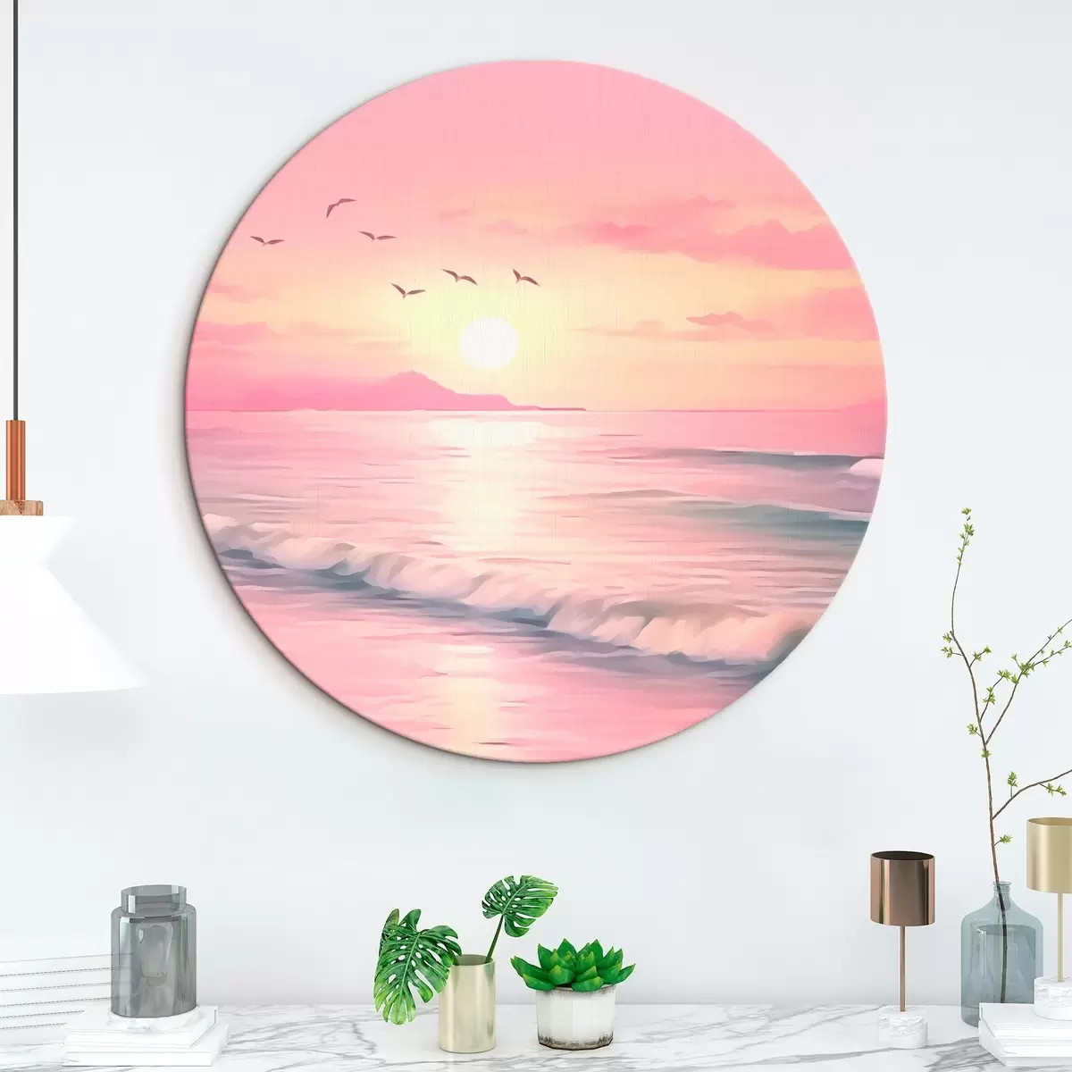 Ronde schilderijen Roze zonsondergang boven de zee Nr r45955