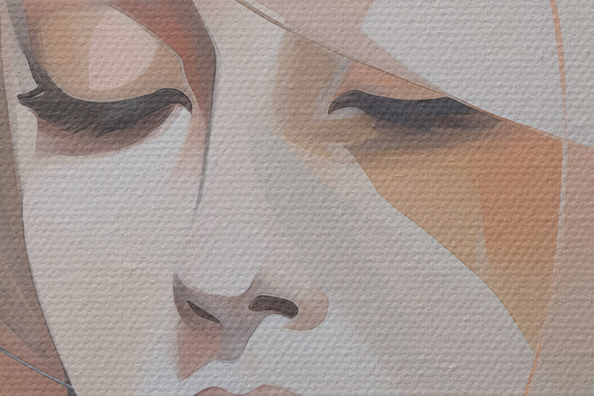 Ronde schilderijen Abstract portret van een meisje Nr r45972
