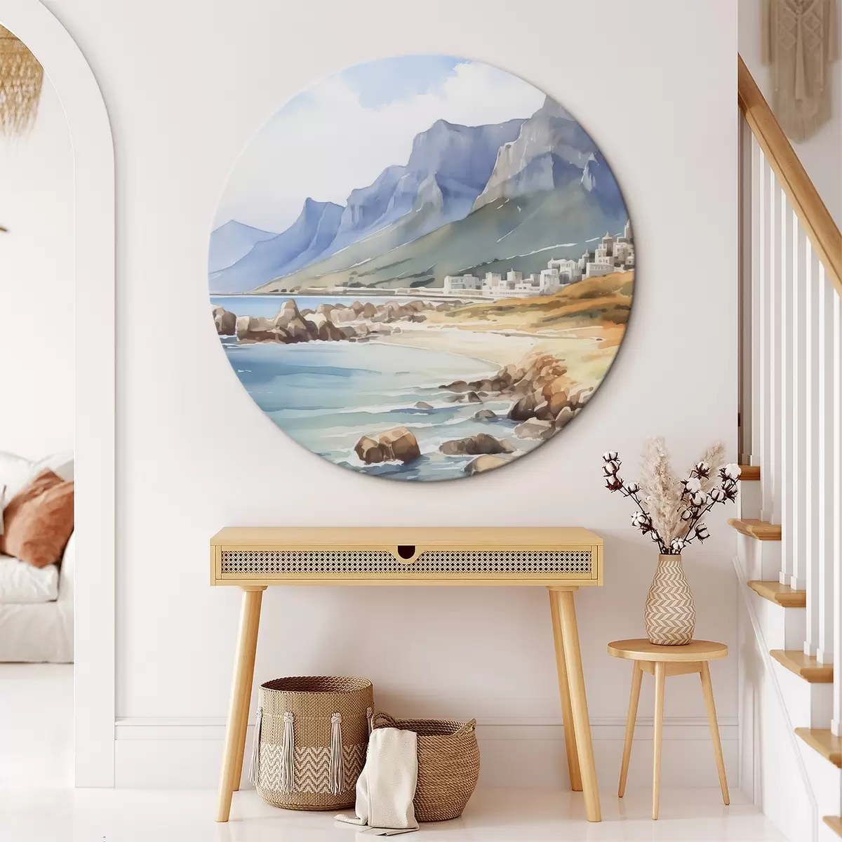 Ronde schilderijen Kust imitatie van aquarel r45978
