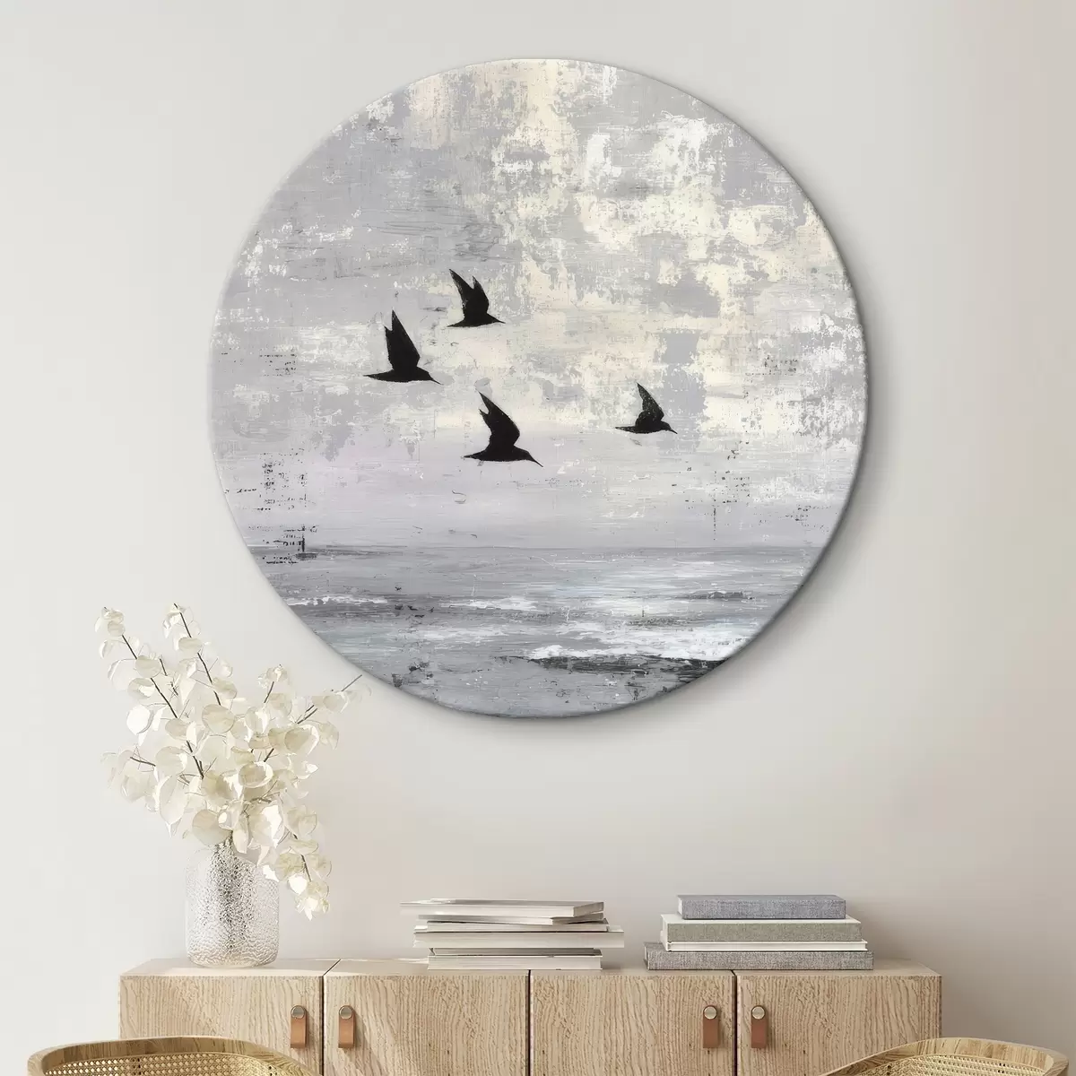Ronde schilderijen Abstract landschap met vogels Nr r45988