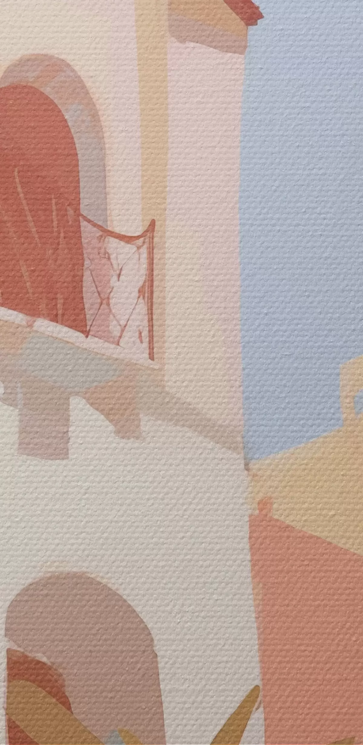 Het schilderij kan direct na ontvangst worden opgehangen. Het schilderij wordt opgespannen op een 2 cm breed houten spieraam.
