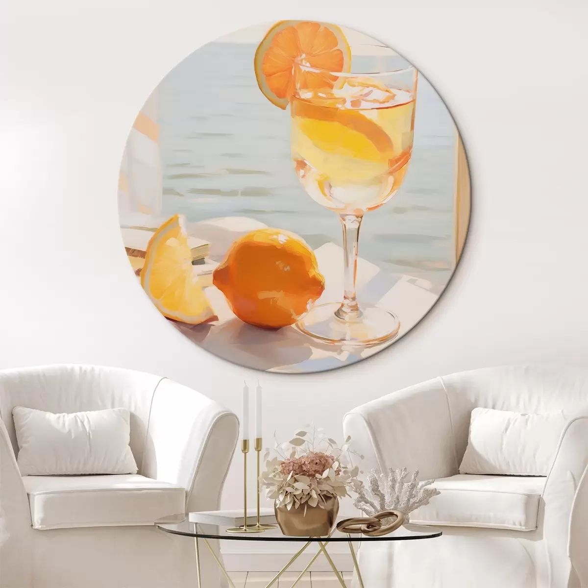 Ronde schilderijen Een cocktail in een glas bij het raam Nr r46064