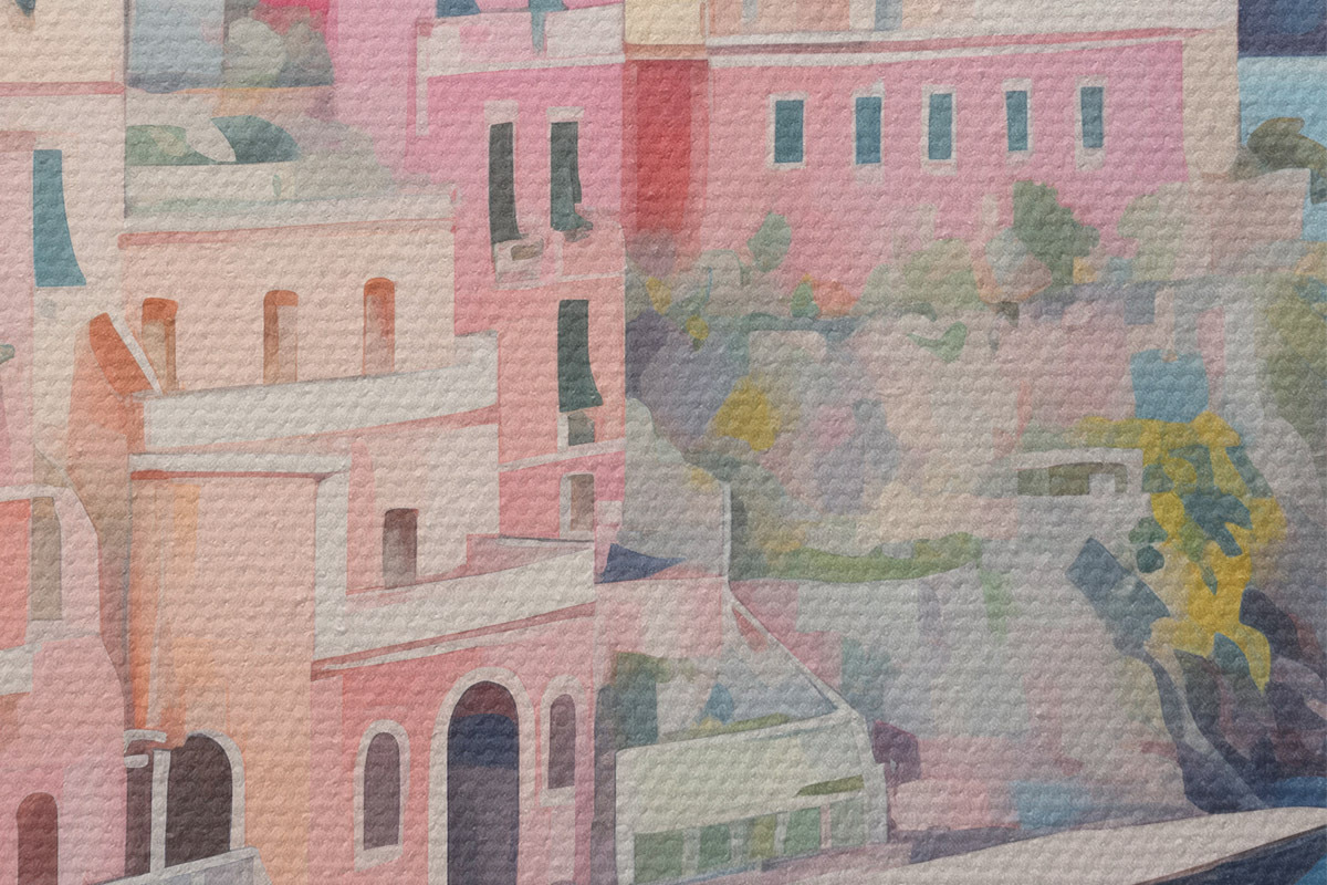 Het is een goedkopere versie van canvas. Het is duurzamer en vochtbestendiger, maar het oppervlak heeft niet zo'n uitgesproken textuur als Premium Canvas