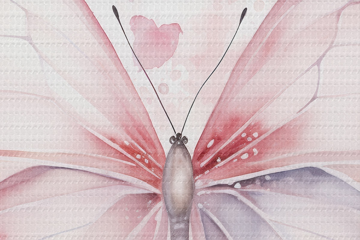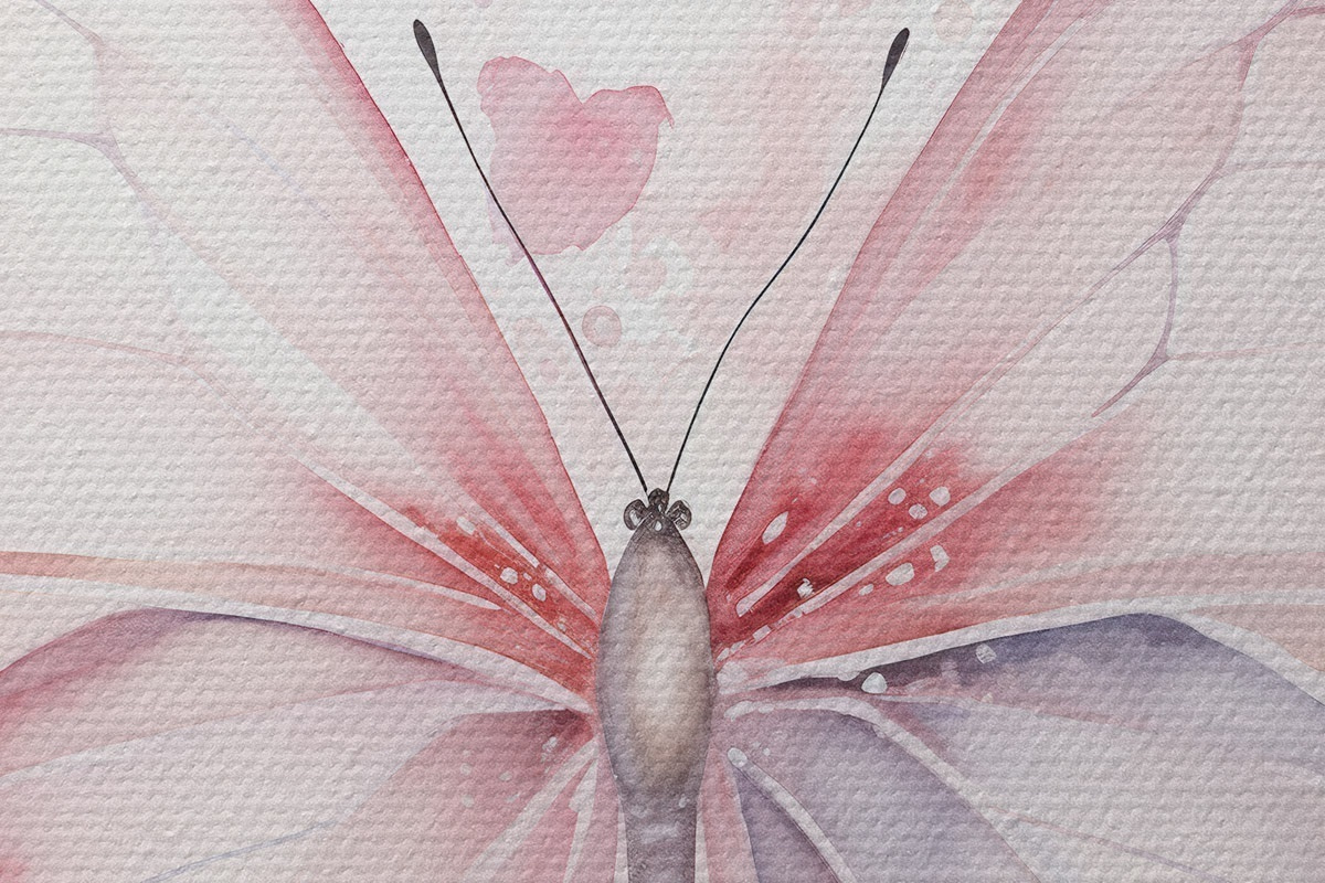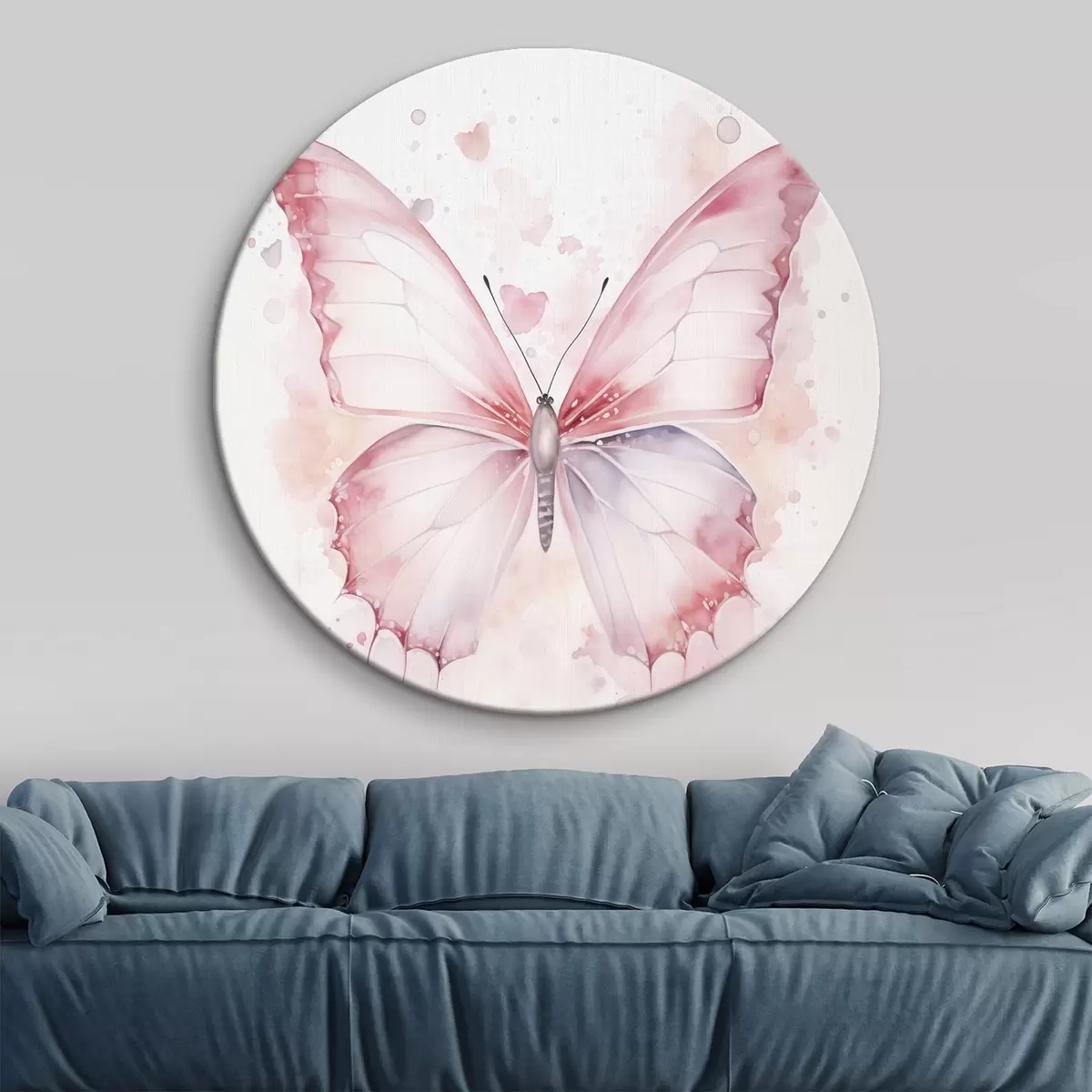 Ronde schilderijen Roze vlinder, aquareltechniek Nr r46073