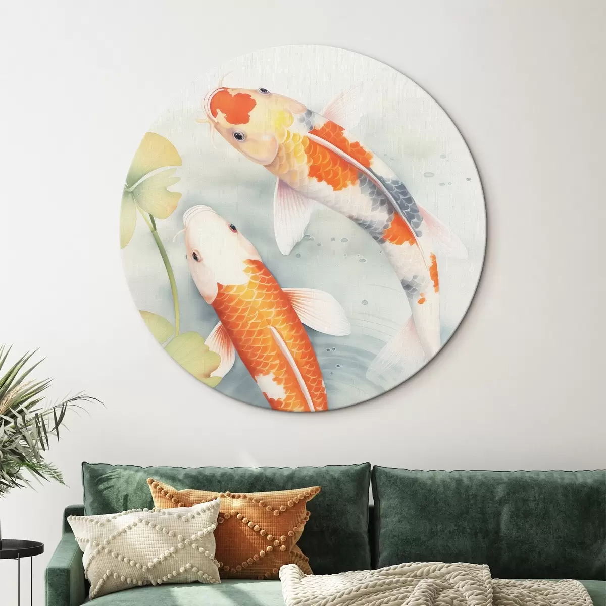 Ronde schilderijen Twee prachtige vissen in een vijver Nr r46086