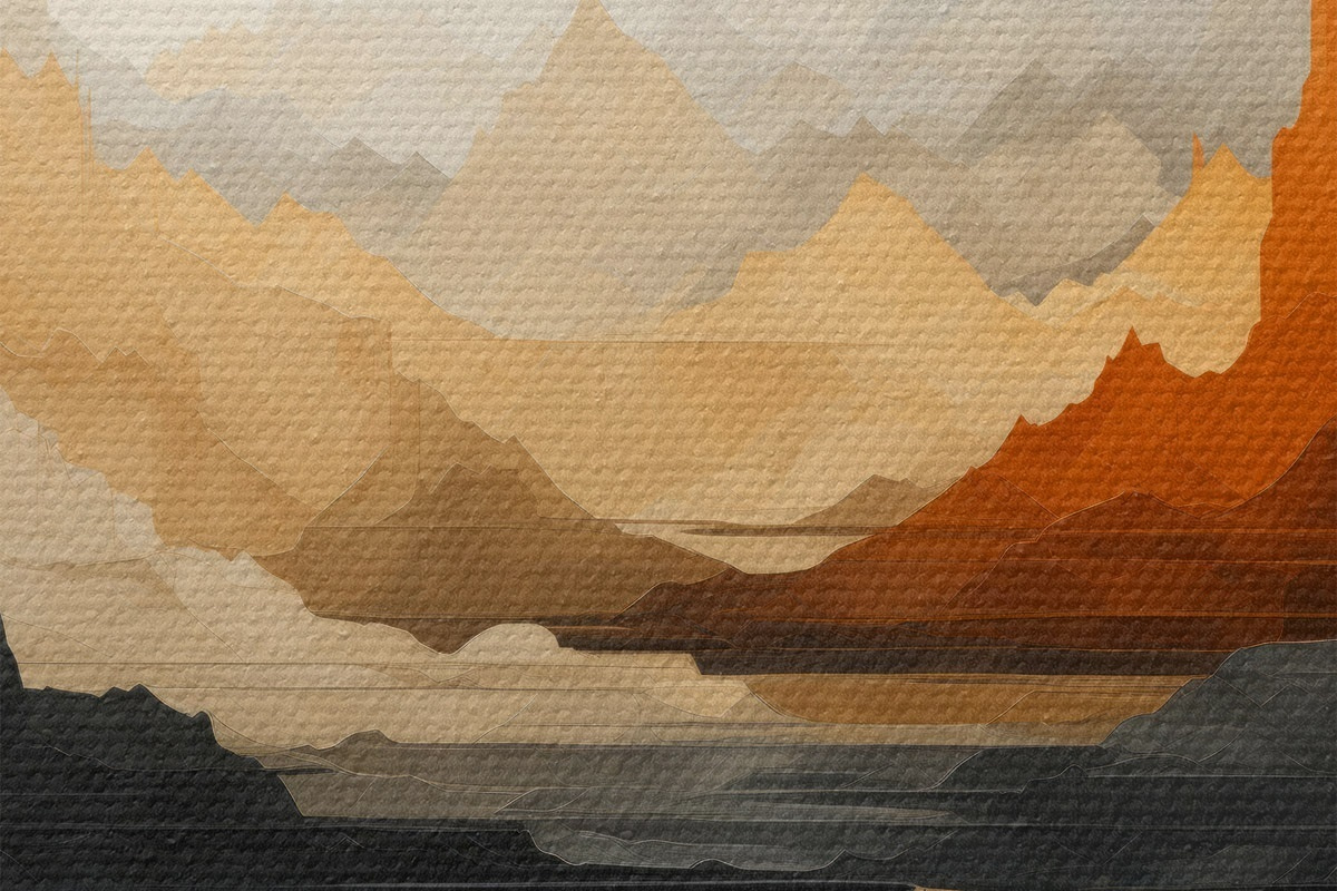 Ronde schilderijen Abstract berglandschap Nr r46140