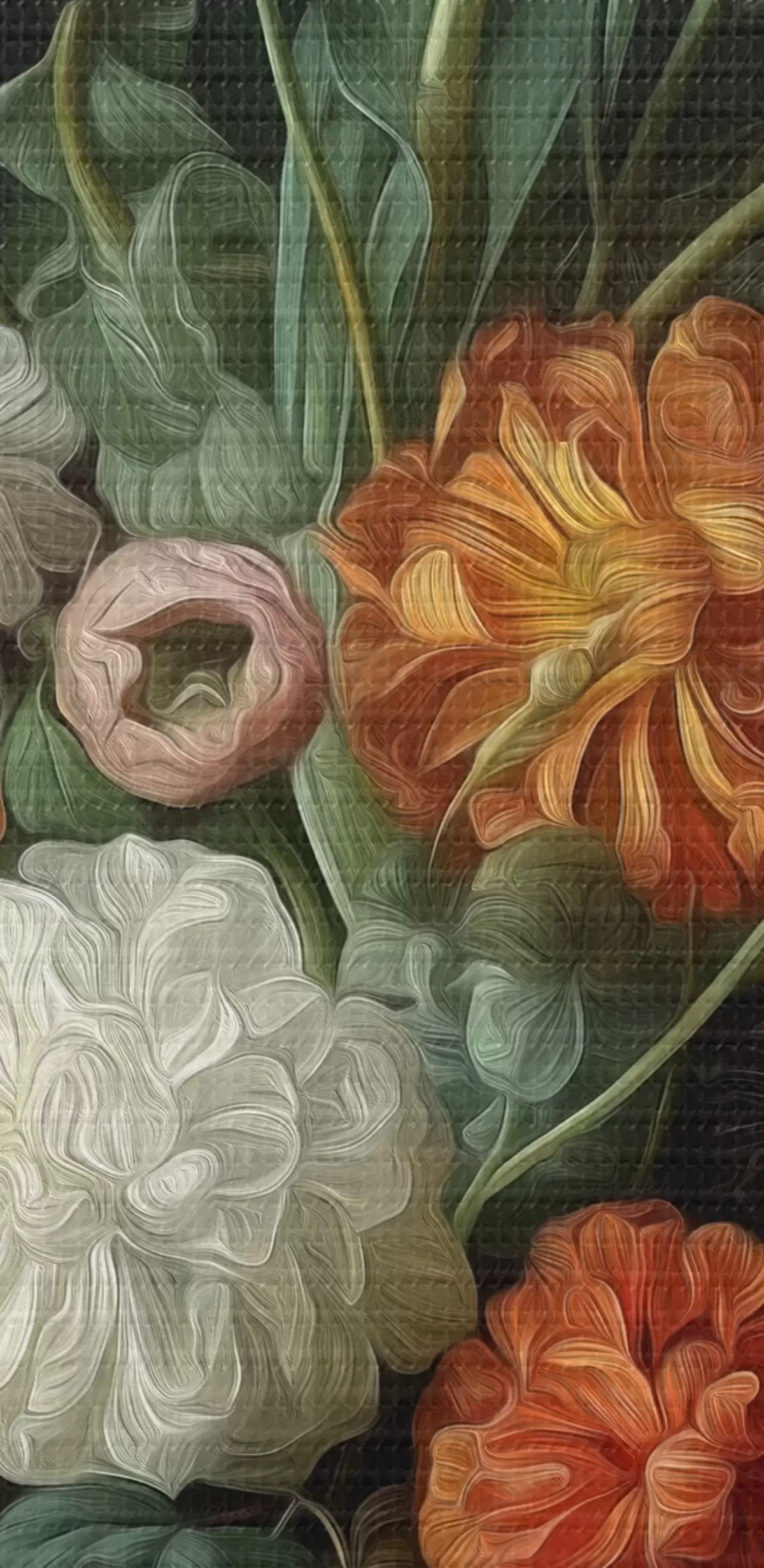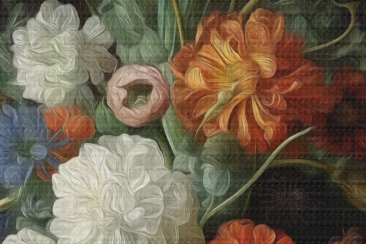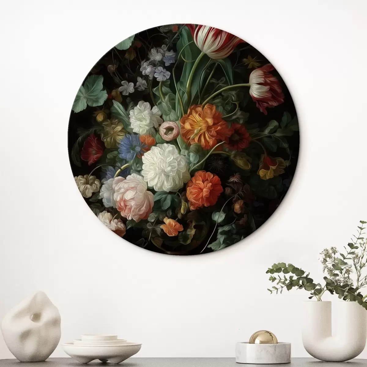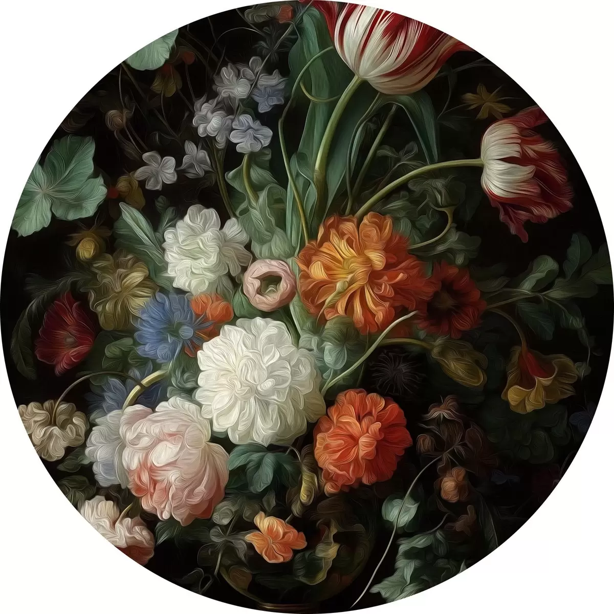 Ronde schilderijen Bloemstuk in de stijl van oude stillevens r46145