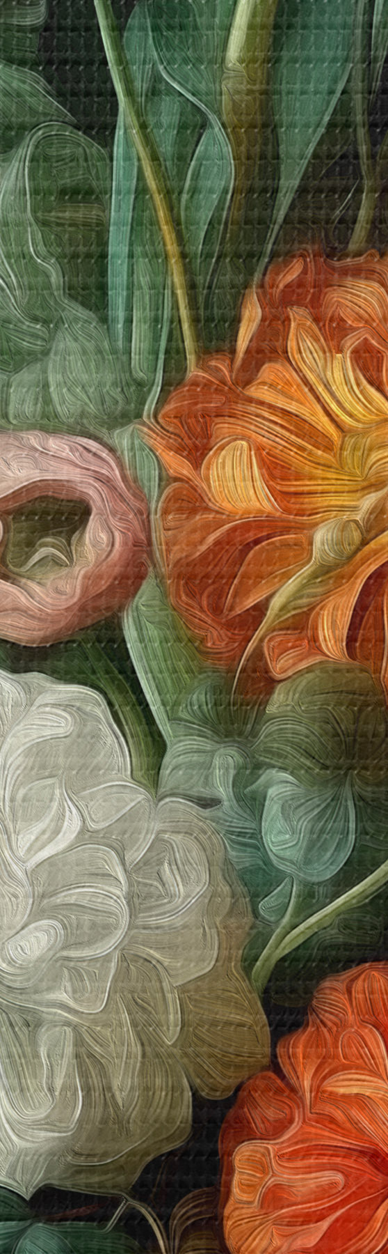 Er zijn drie soorten materiaal te bestellen: Economic Canvas - een dicht en duurzaam materiaal voor digitaal printen, identiek aan schildersdoek, waterdicht oppervlak, realistische weergave van details, materiaal met gemiddelde korrel. Premium Canvas - de textuur lijkt op die van schildersdoek (verweven kleine draden). Zachte, gedetailleerde reproductie van de afbeelding op een mat oppervlak. Eco-Premium - hoogwaardige 100% katoenen stof. Dankzij de natuurlijke katoenvezels is het materiaal duurzaam en slijtvast. Uitstekende kleurweergave en detail.