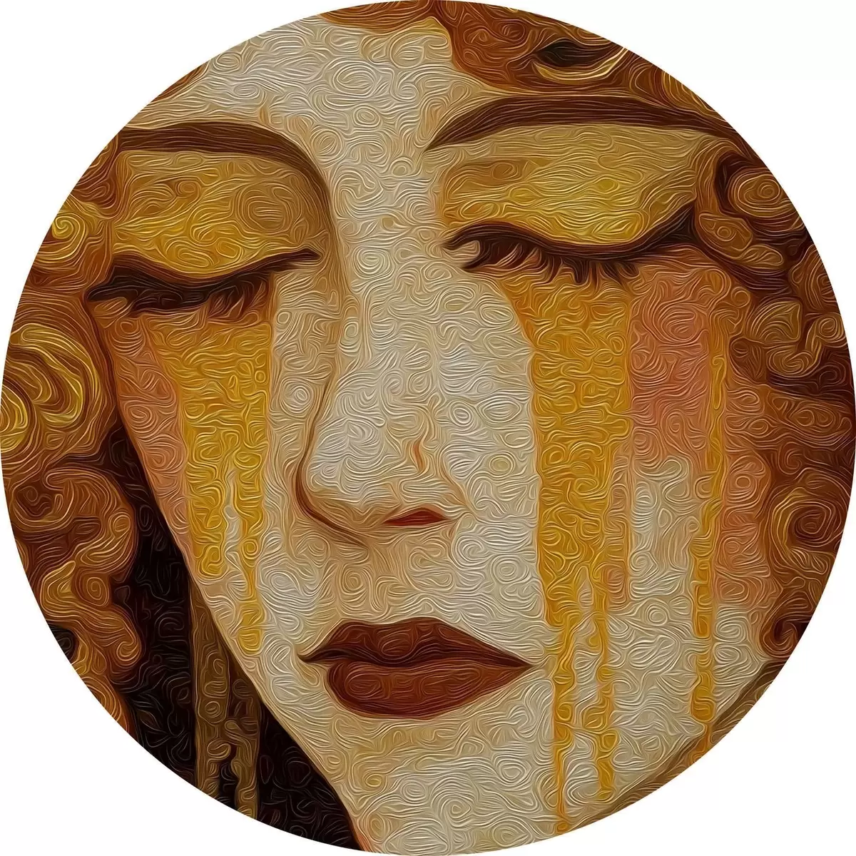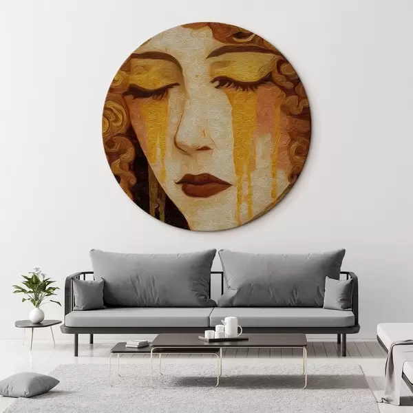 Ronde schilderijen Vrouwelijk portret met rood haar en decoratieve make-up Nr r46149