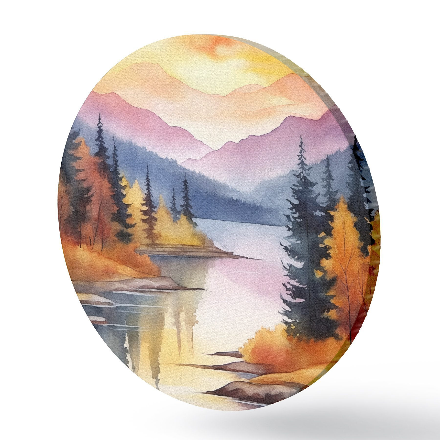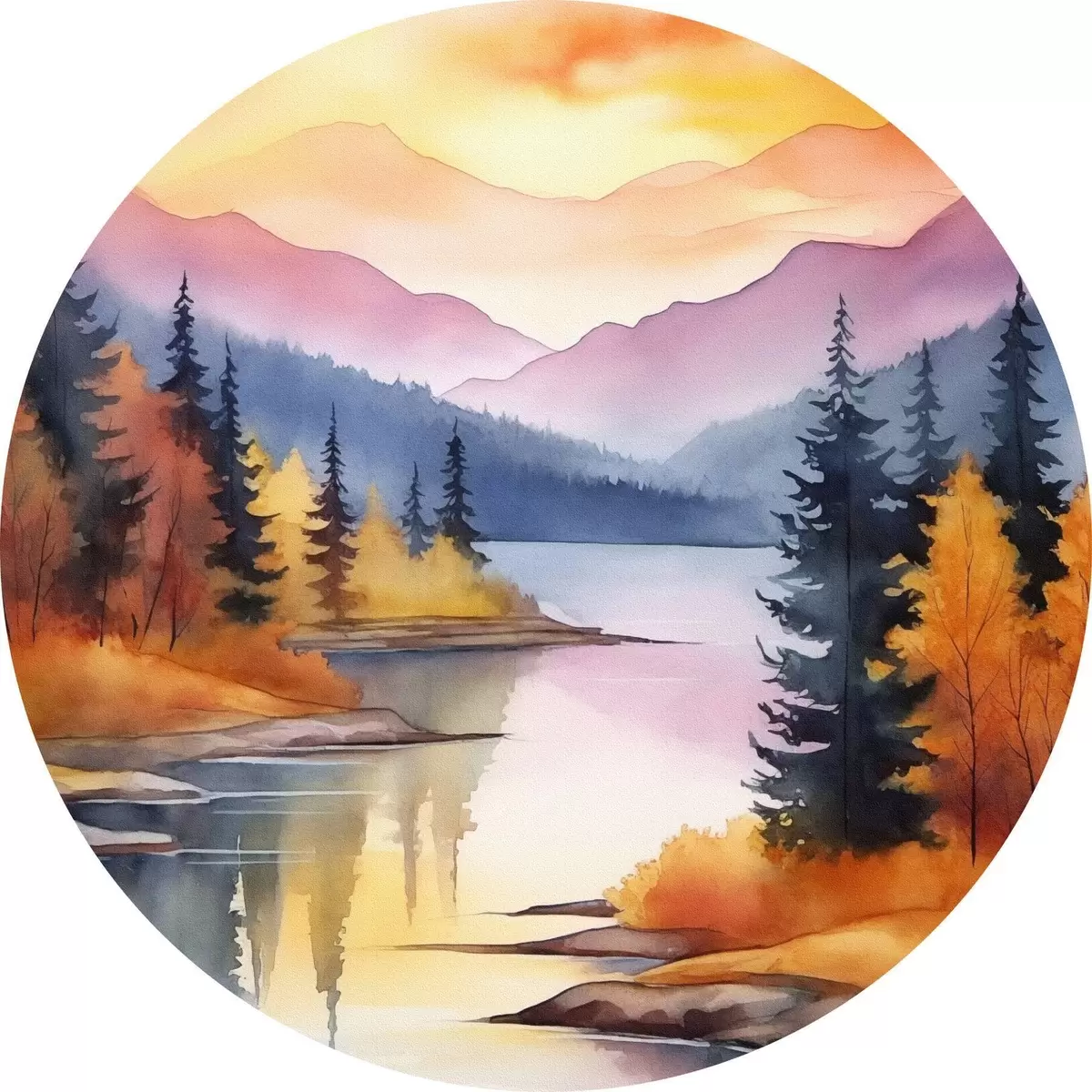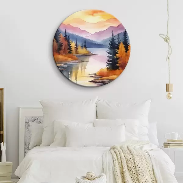 Ronde schilderijen Herfstlandschap aan het meer met een heldere lucht Nr r46155