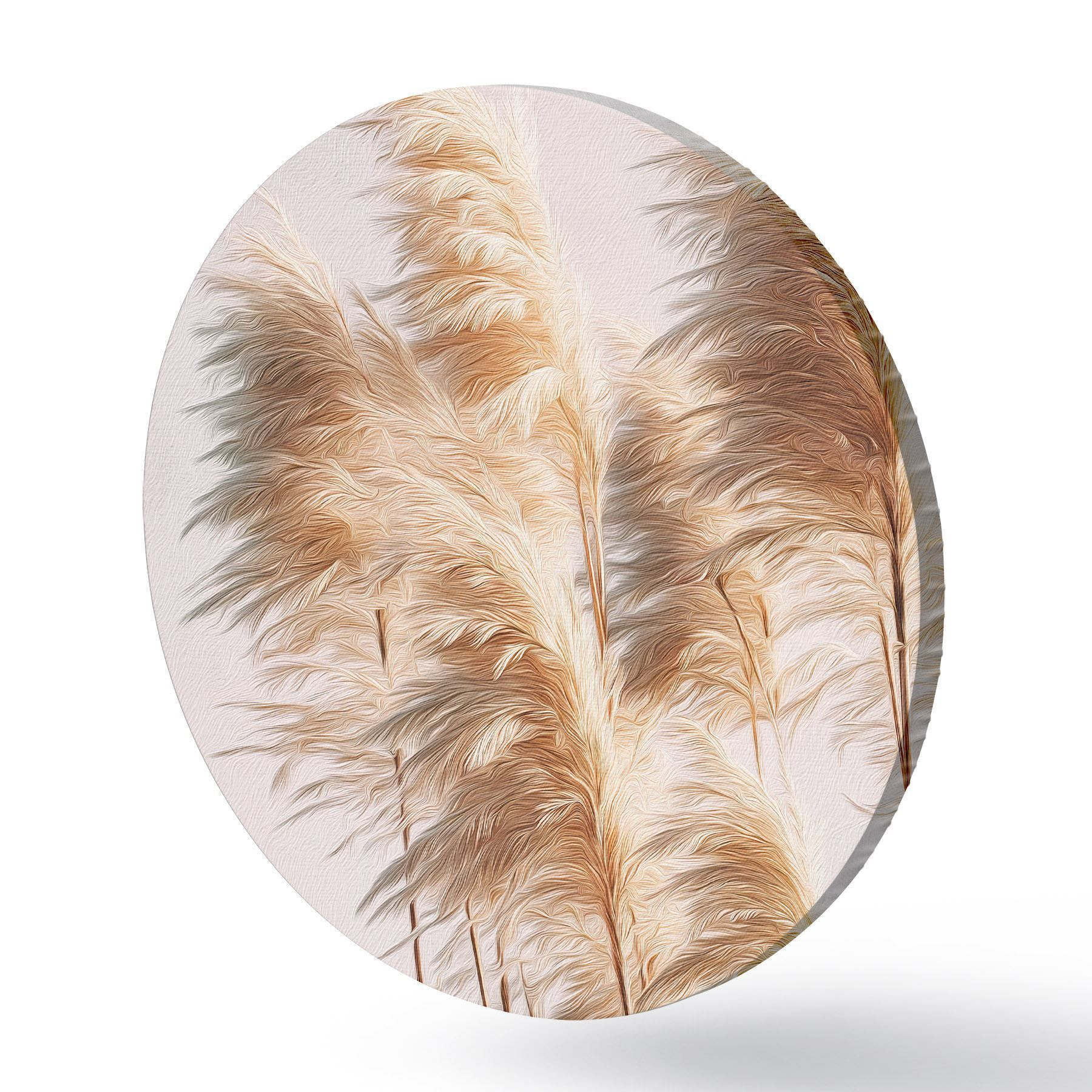 Ronde schilderijen Pluizige decoratieve grassen op een lichte achtergrond Nr r46157