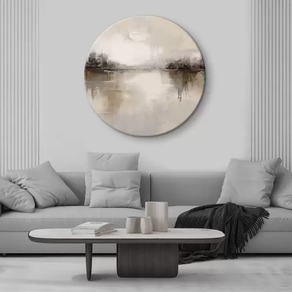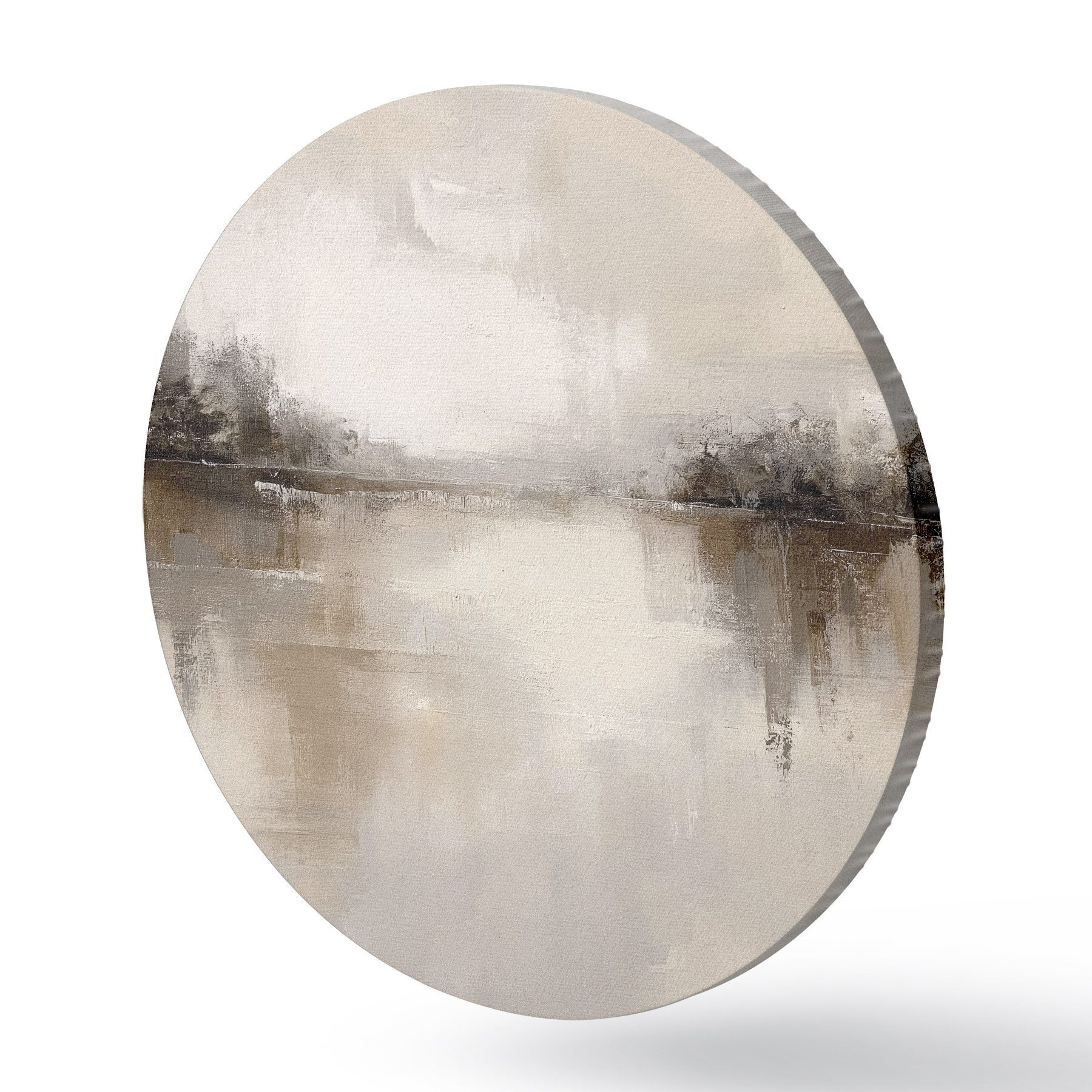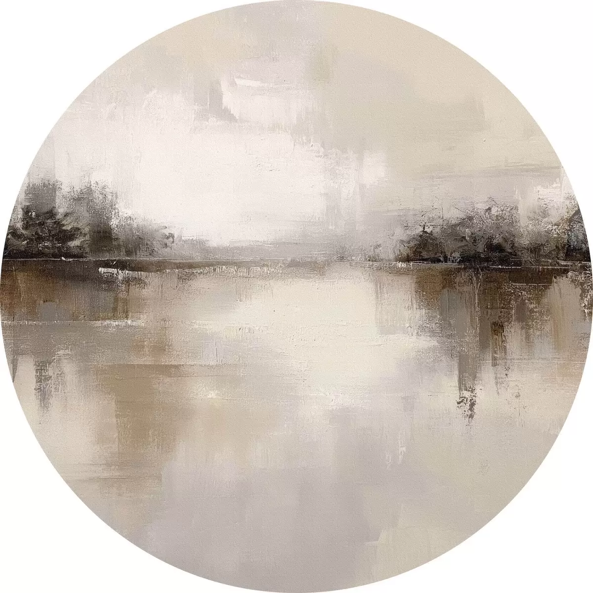 Ronde schilderijen Zacht landschap met een meer in warme beige-grijze tinten Nr r46158