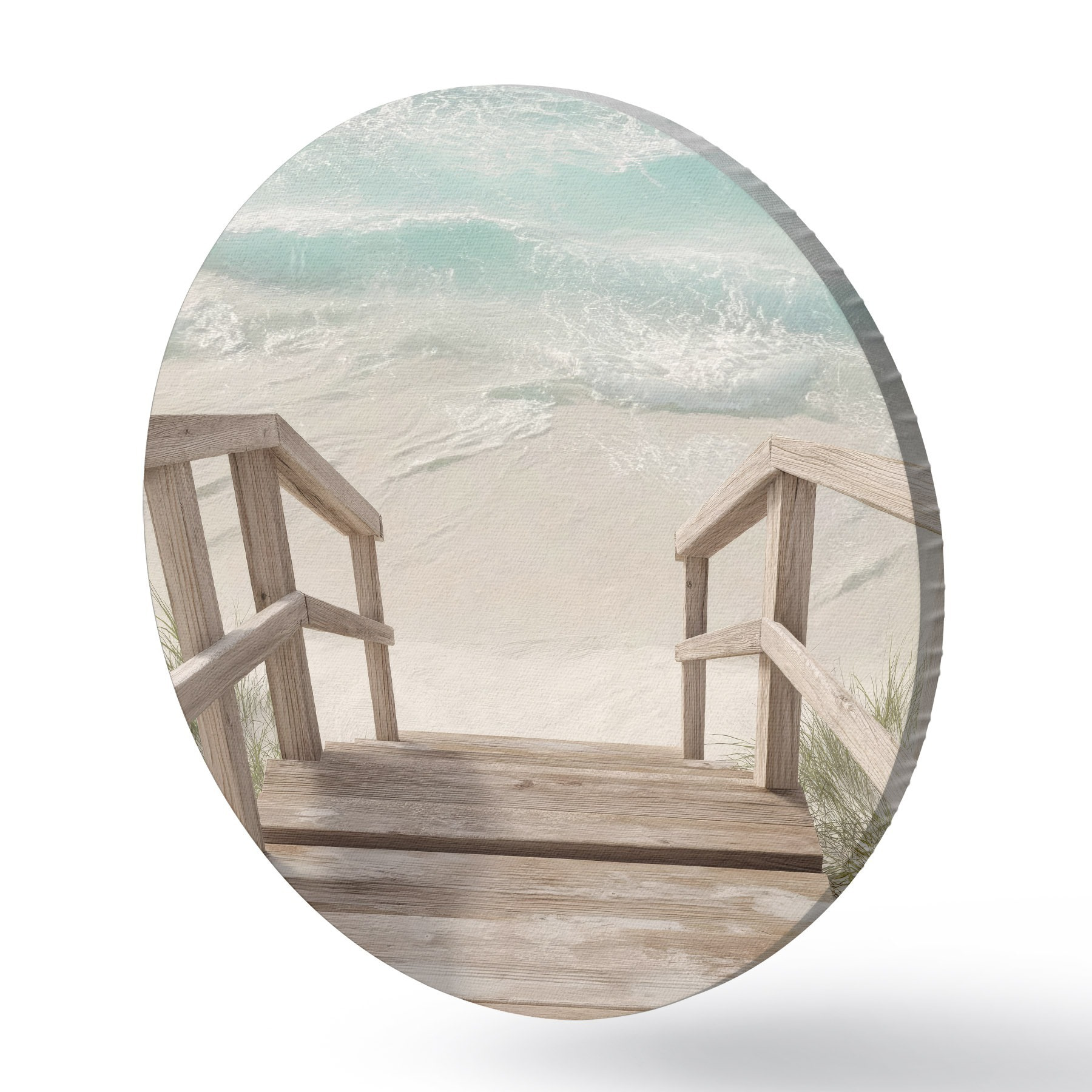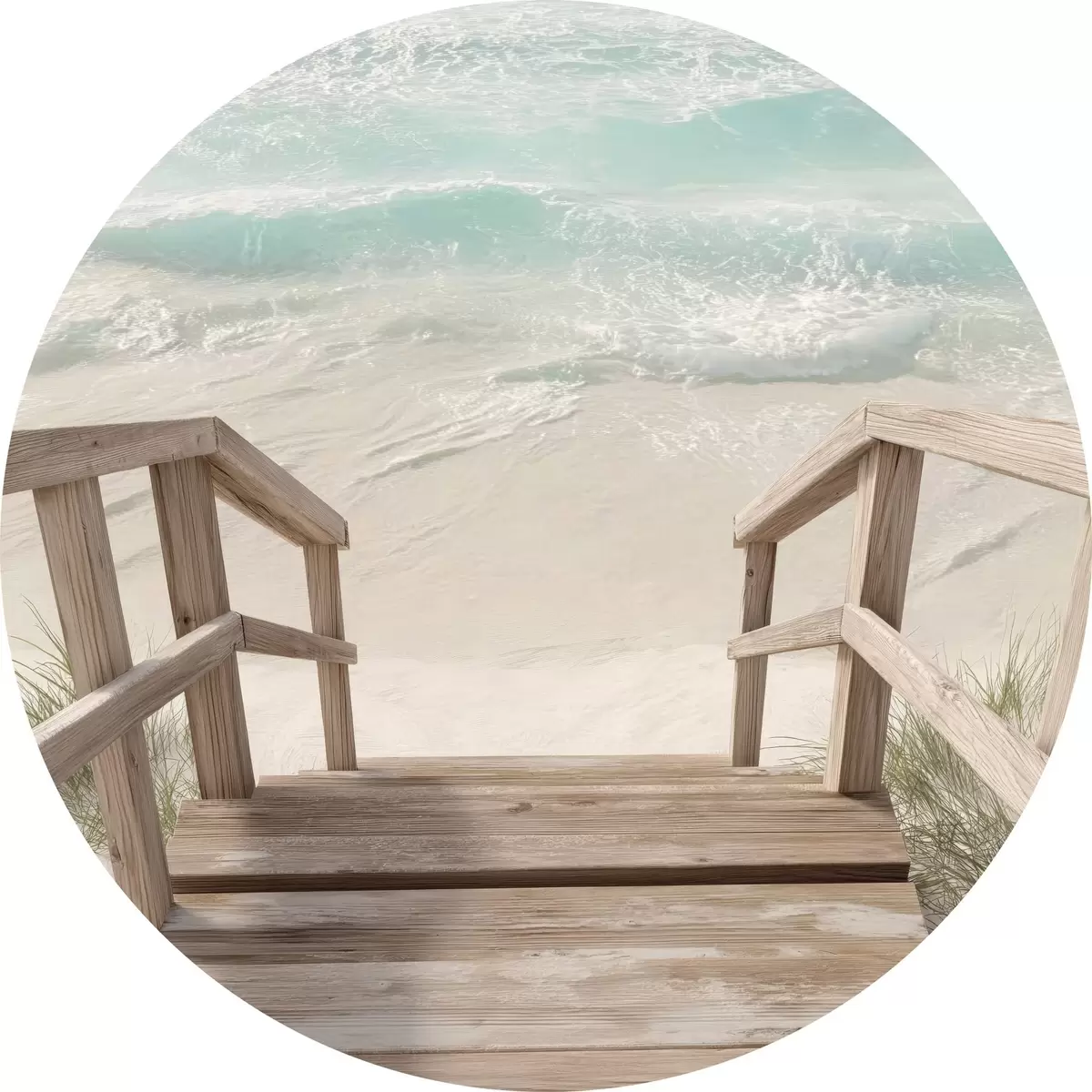 Ronde schilderijen Houten trap die naar een turquoise strand leidt Nr r46163