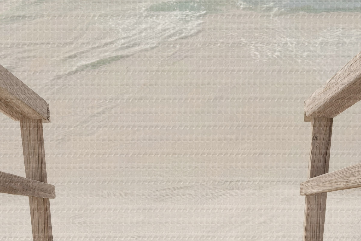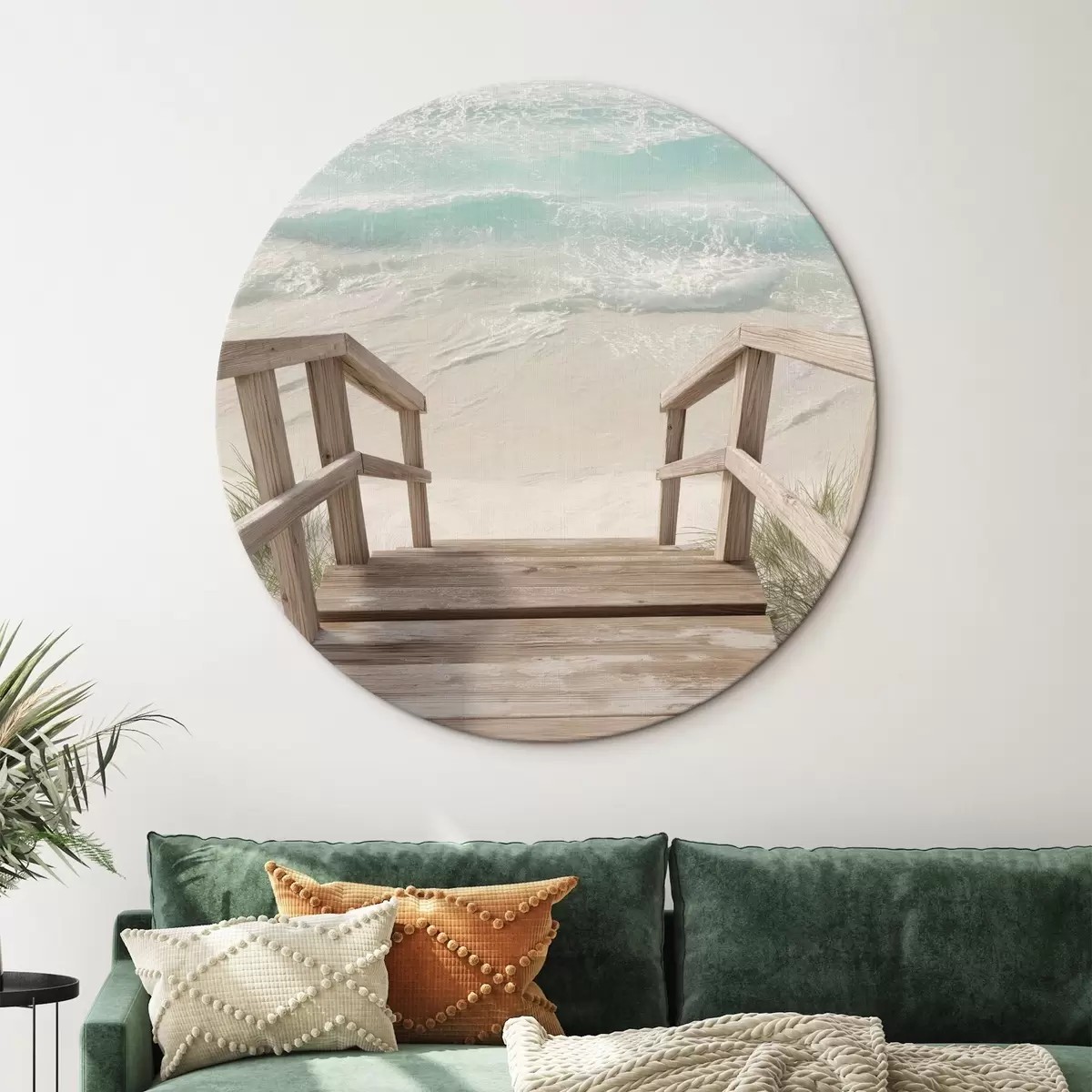 Ronde schilderijen Houten trap die naar een turquoise strand leidt Nr r46163