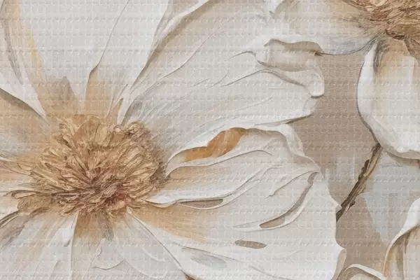 Ronde schilderijen Getextureerde bloemen op een lichte achtergrond met warme tinten r46166
