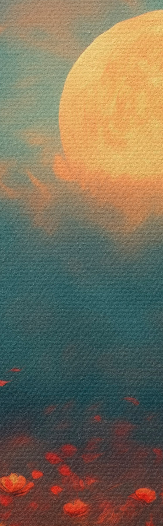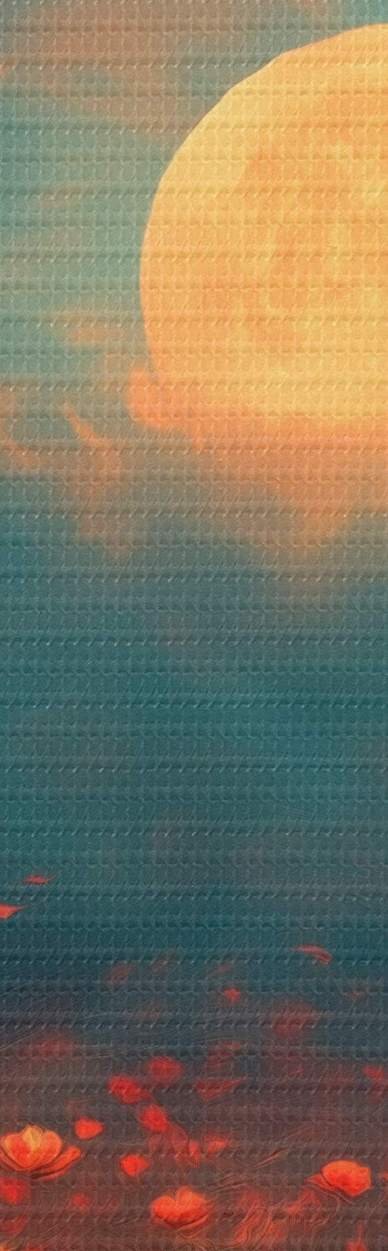 Ronde schilderijen Maan boven een veld met rode bloemen in een mistige avondhemel Nr r46167