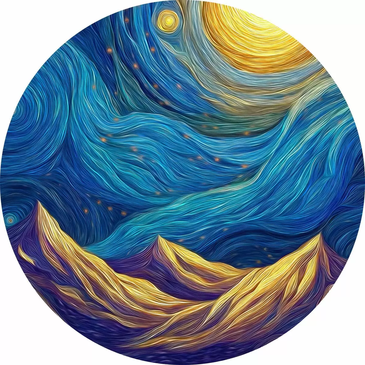 Ronde schilderijen Heldere sterrenhemel boven bergtoppen Nr r46168