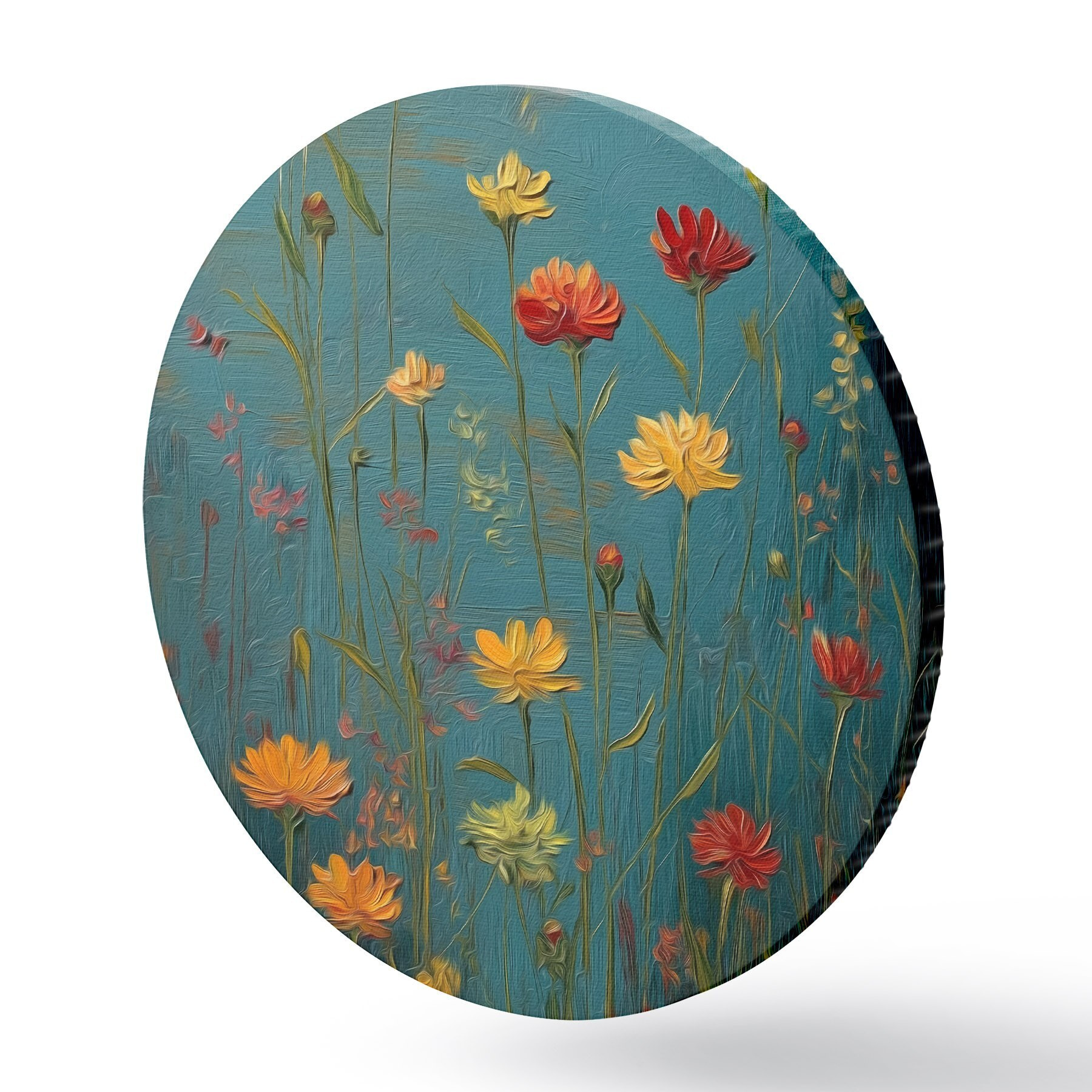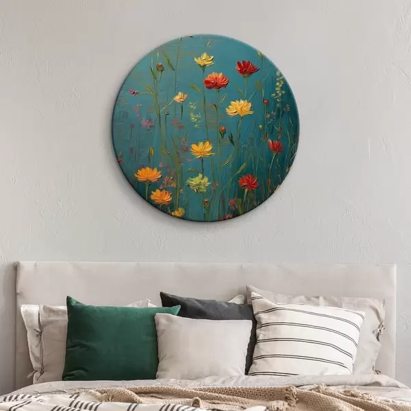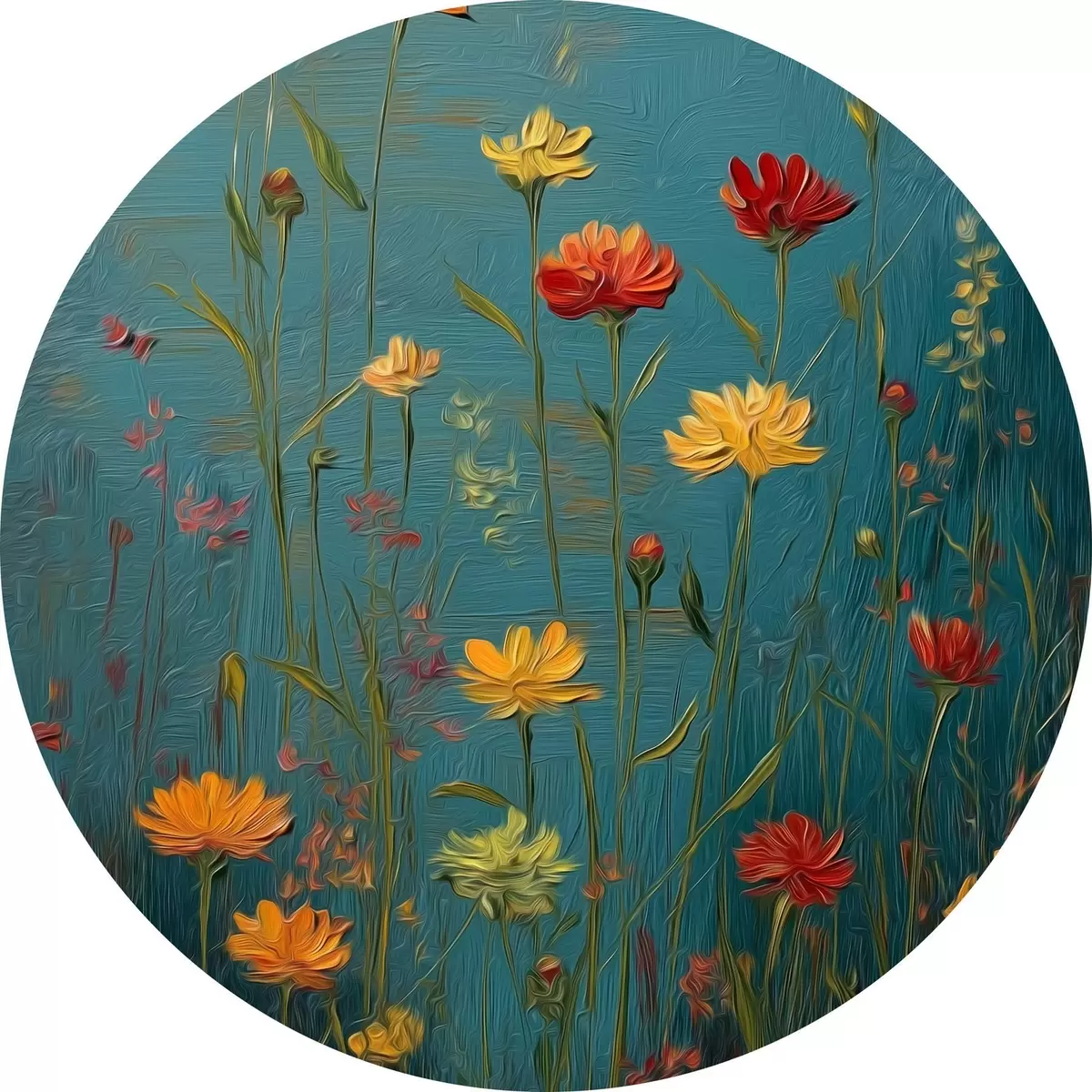 Ronde schilderijen Wilde bloemen op een diep turquoise achtergrond Nr r46169
