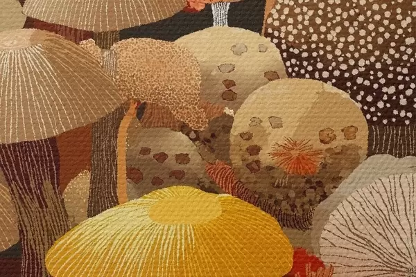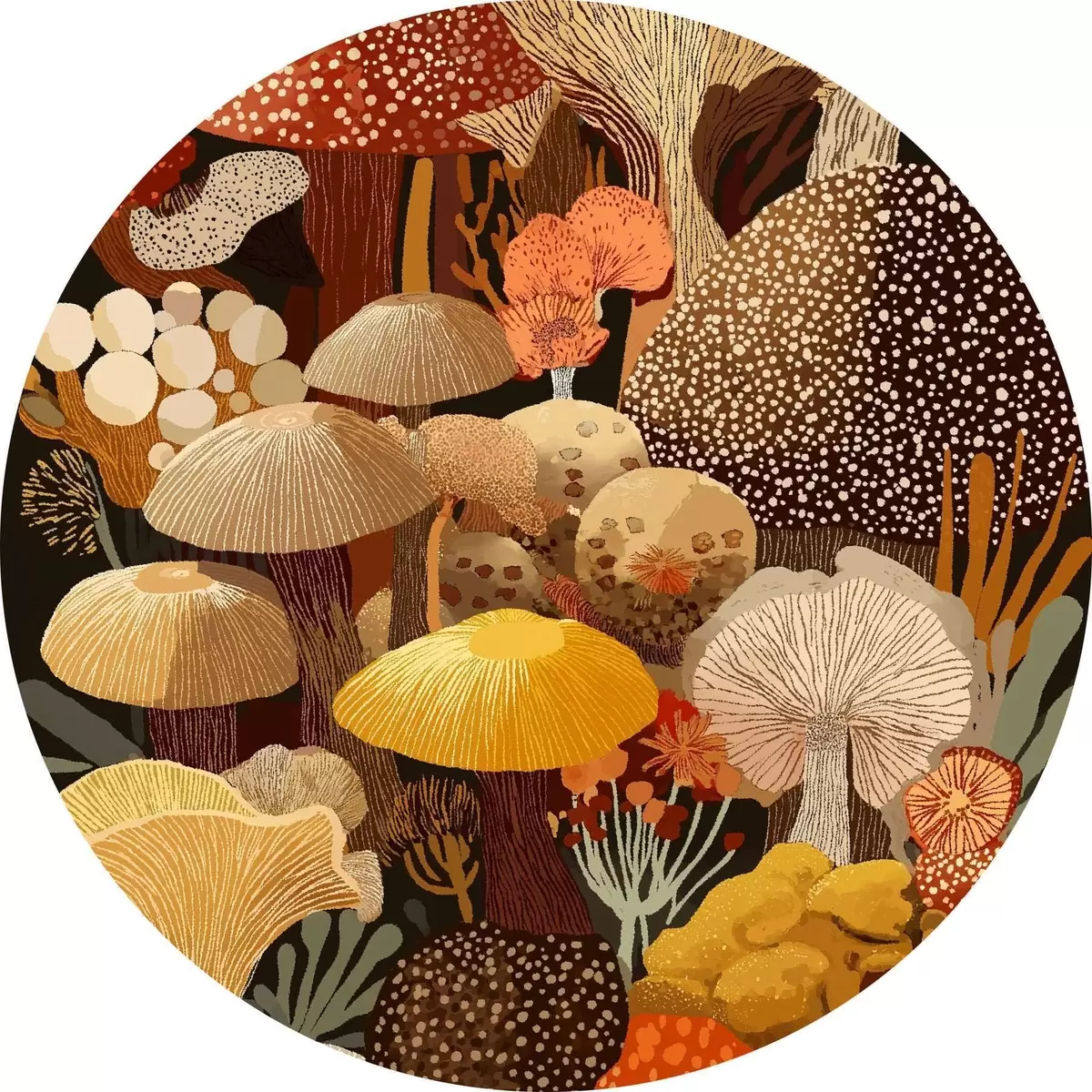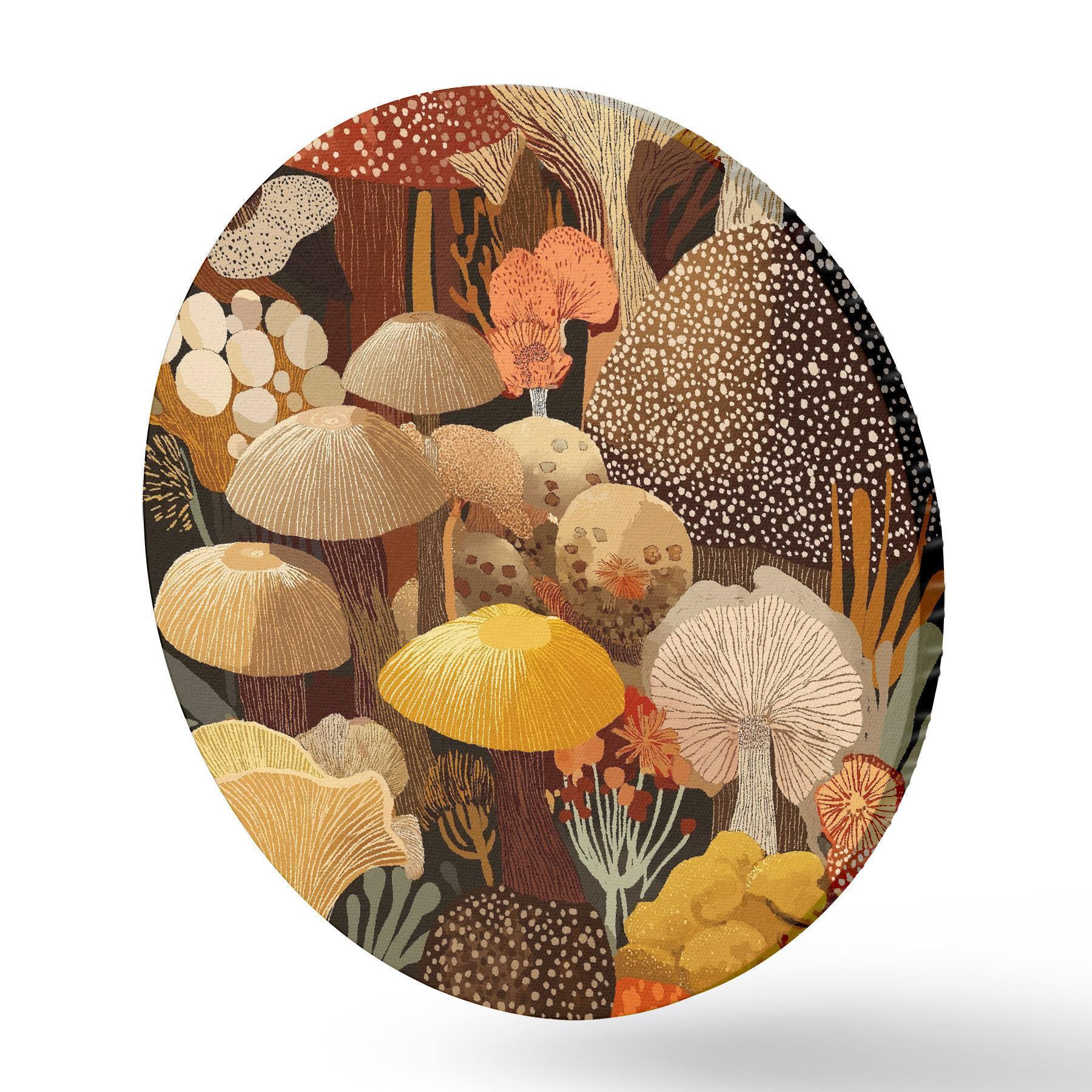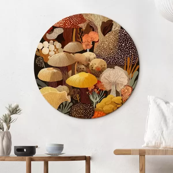 Ronde schilderijen Samenstelling van verschillende bospaddestoelen in warme tinten Nr r46170