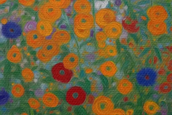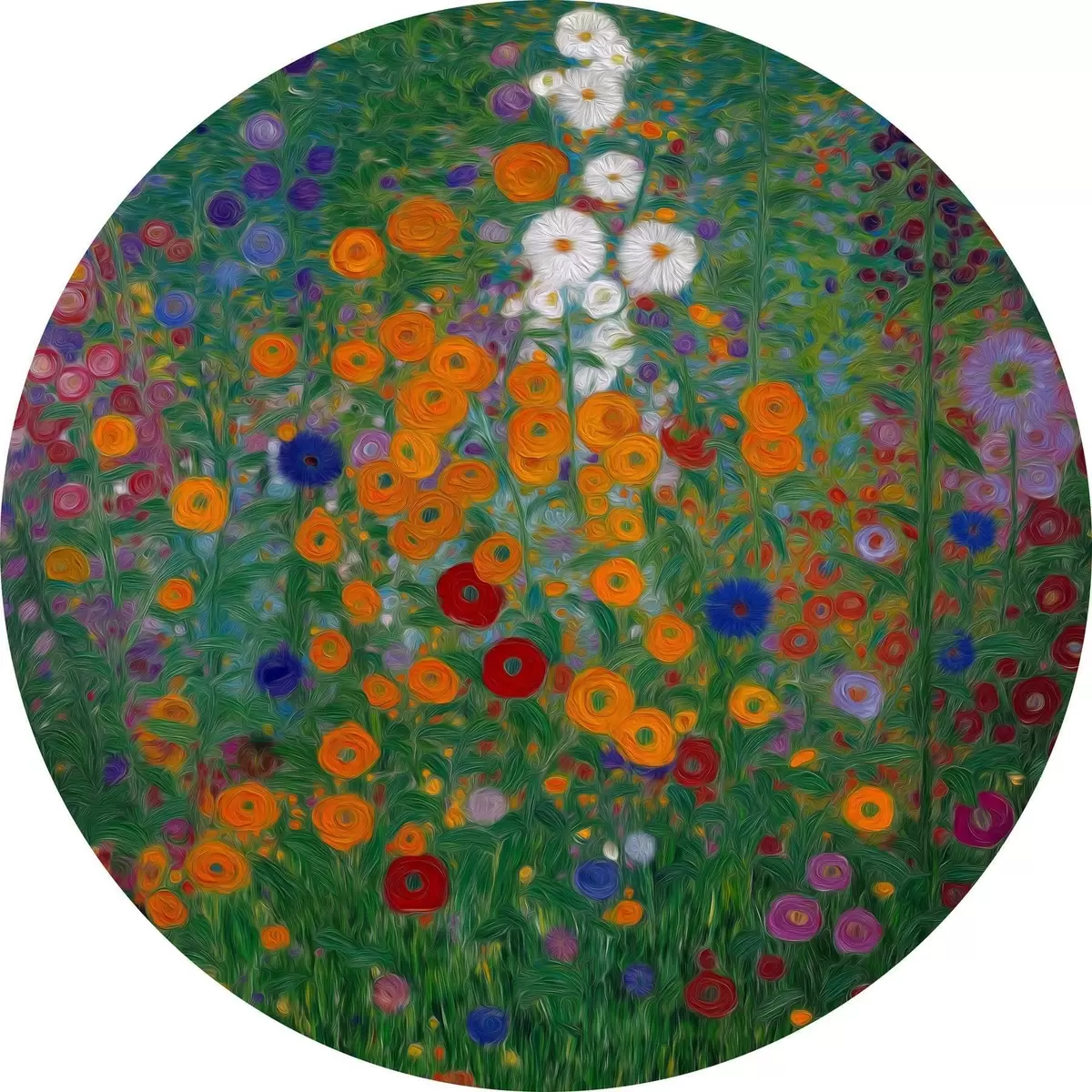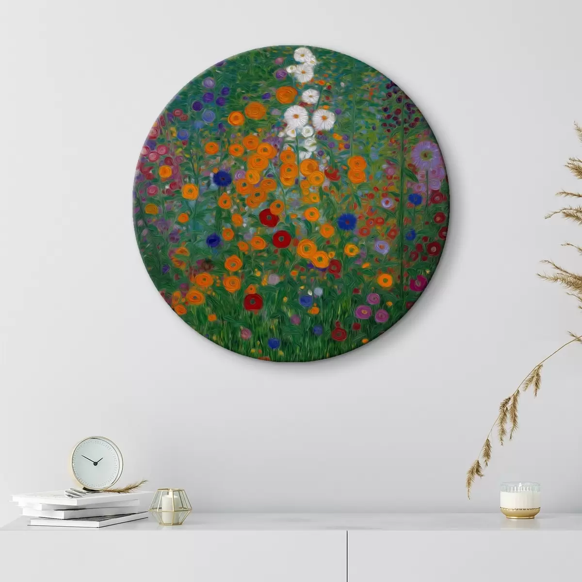 Ronde schilderijen Kleurrijk bloemenveld met witte accenten Nr r46172