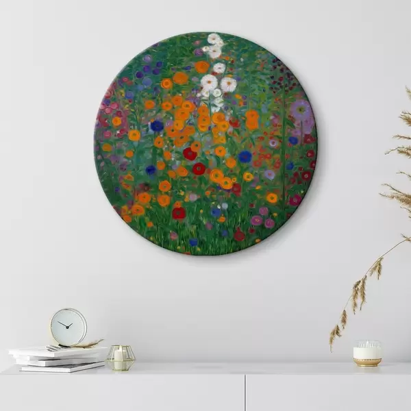 Ronde schilderijen Kleurrijk bloemenveld met witte accenten r46172