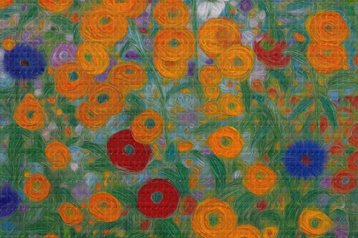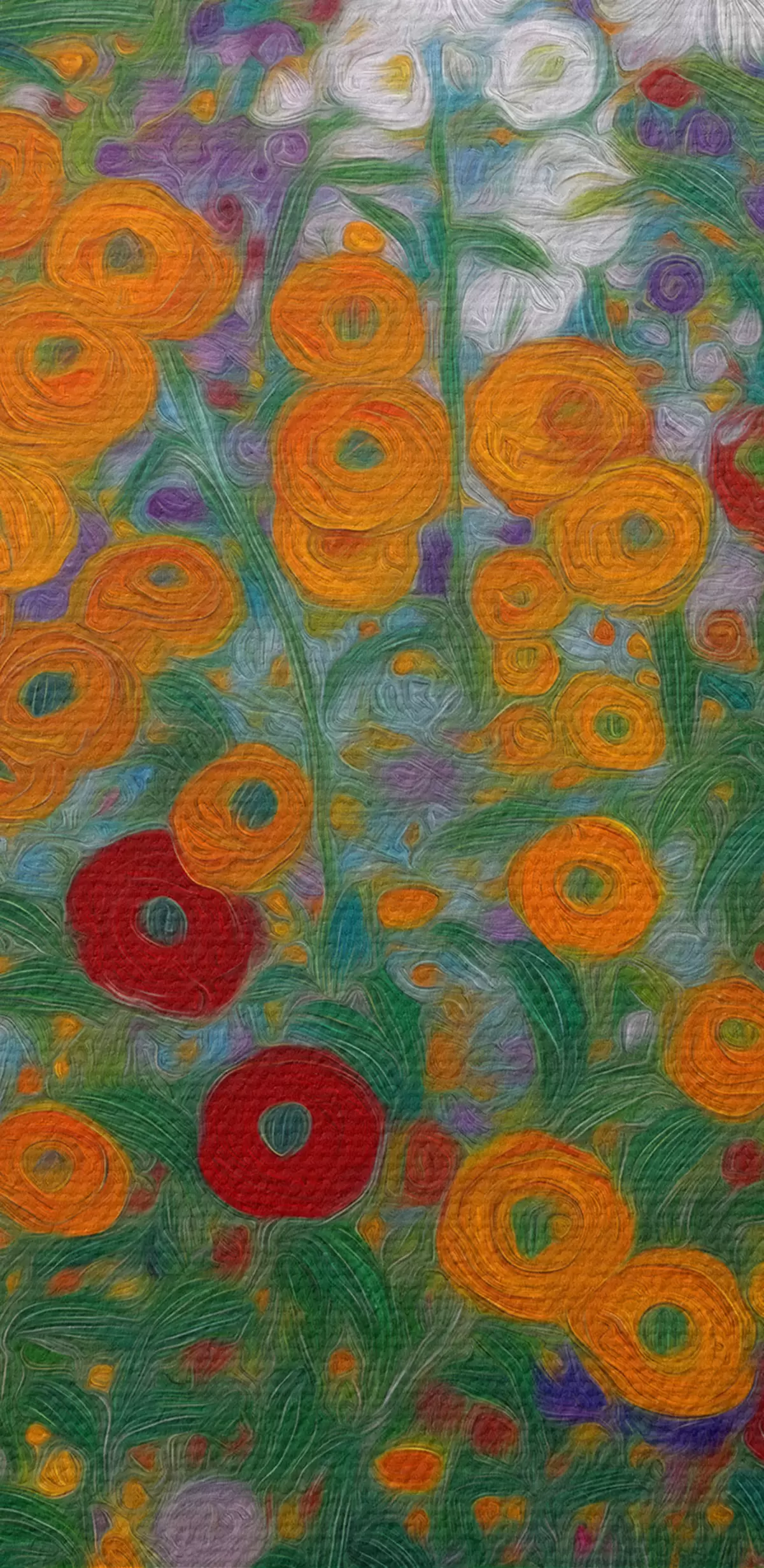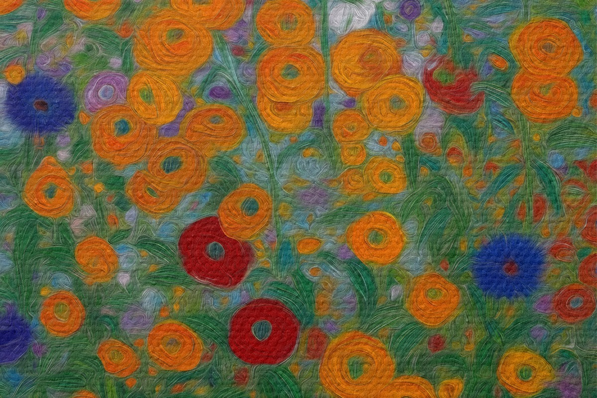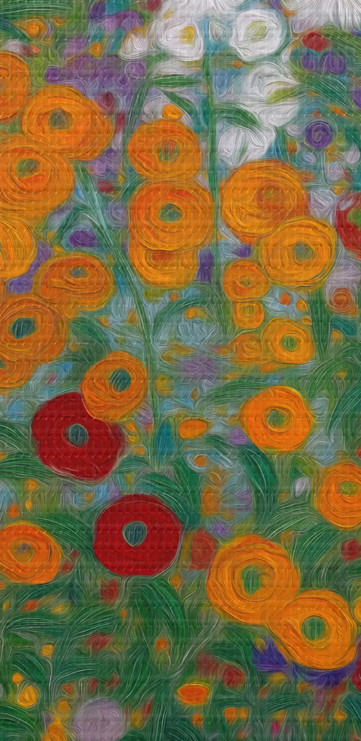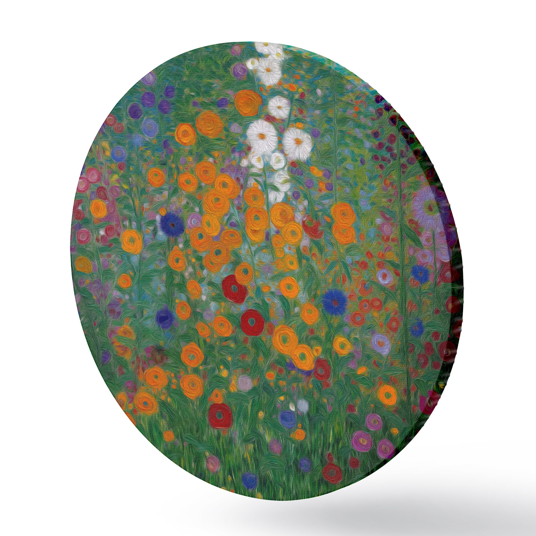 Ronde schilderijen Kleurrijk bloemenveld met witte accenten Nr r46172
