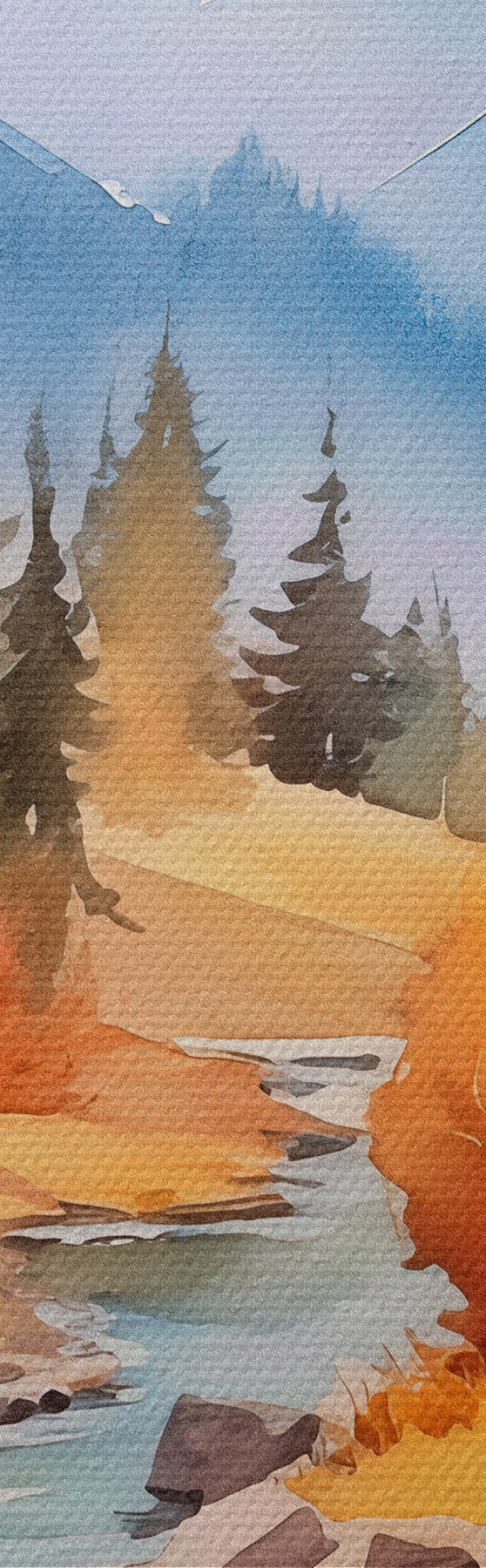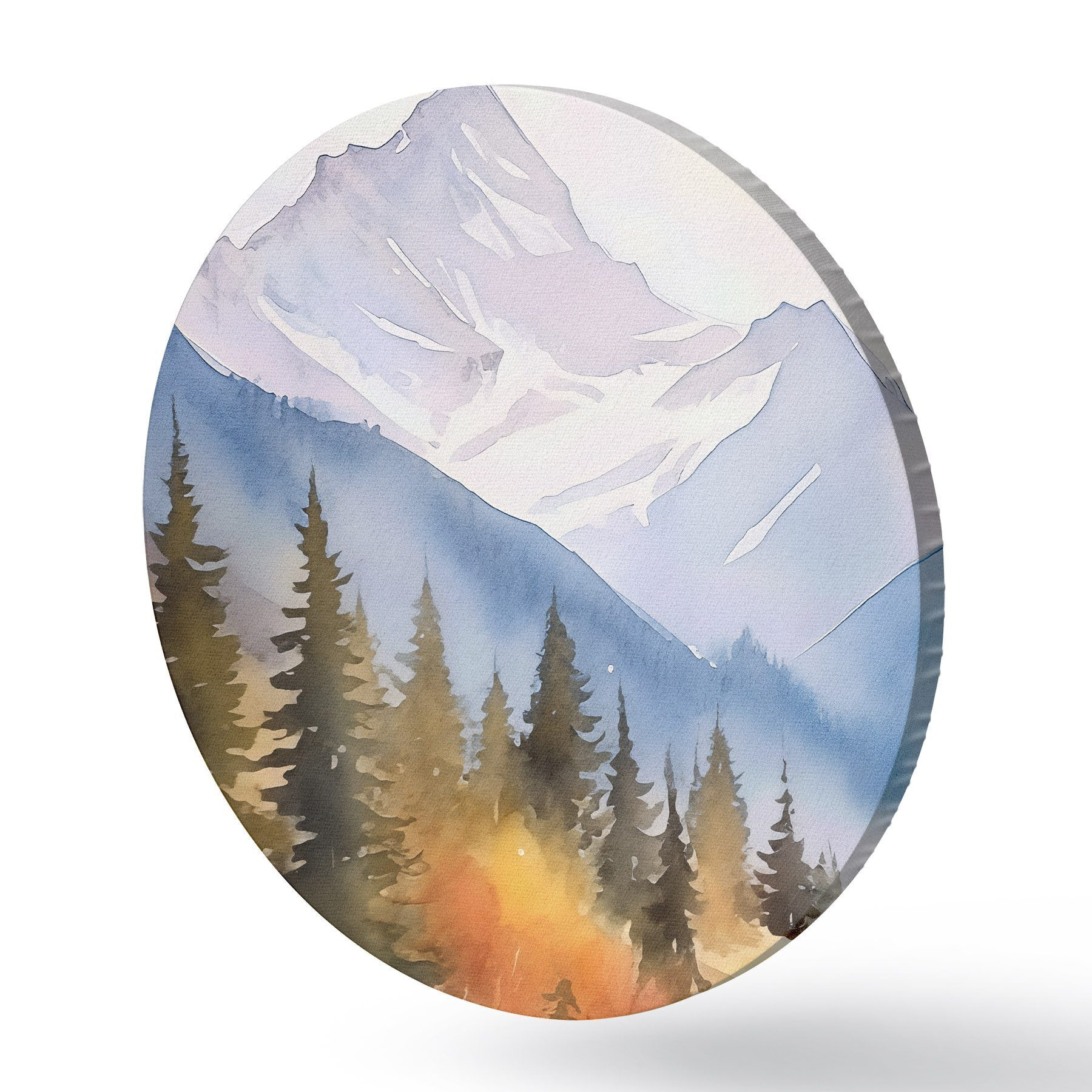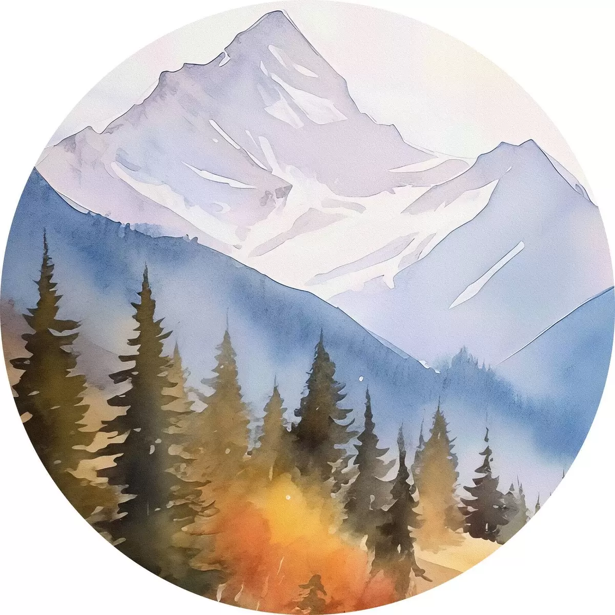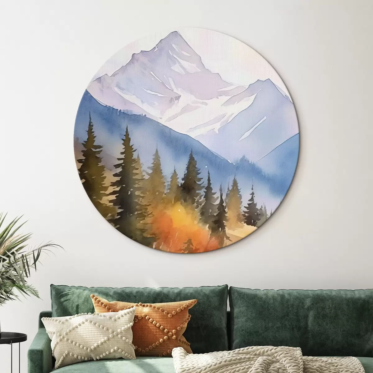 Ronde schilderijen Herfstberglandschap met een rivier en een levendig bos Nr r46187