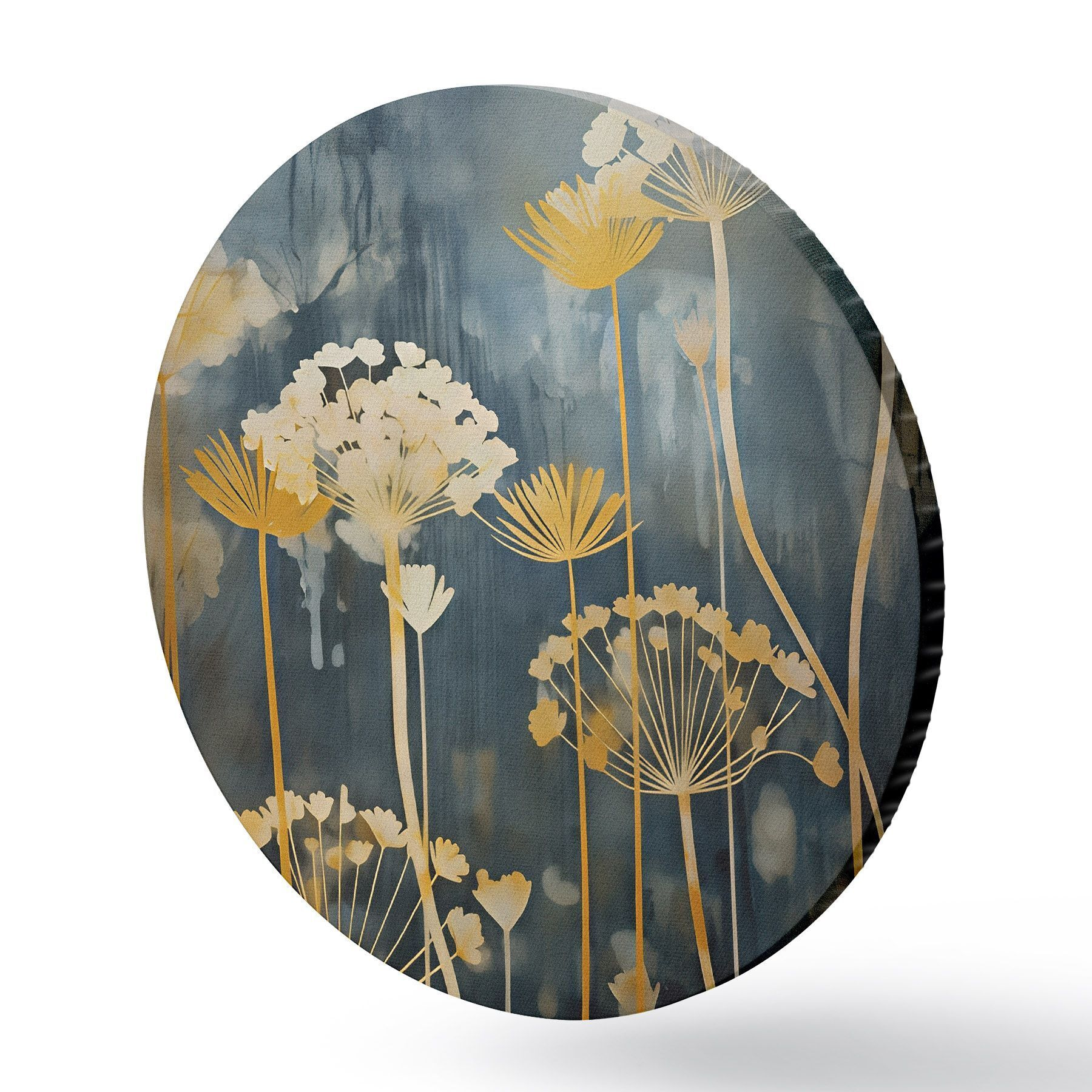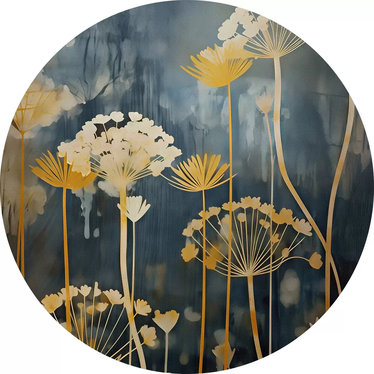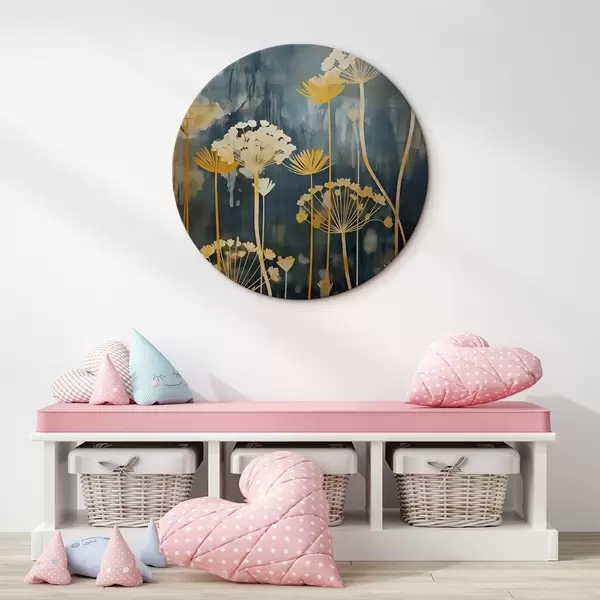 Ronde schilderijen Gestileerde bloemen met dunne stelen op een donkere achtergrond Nr r46188