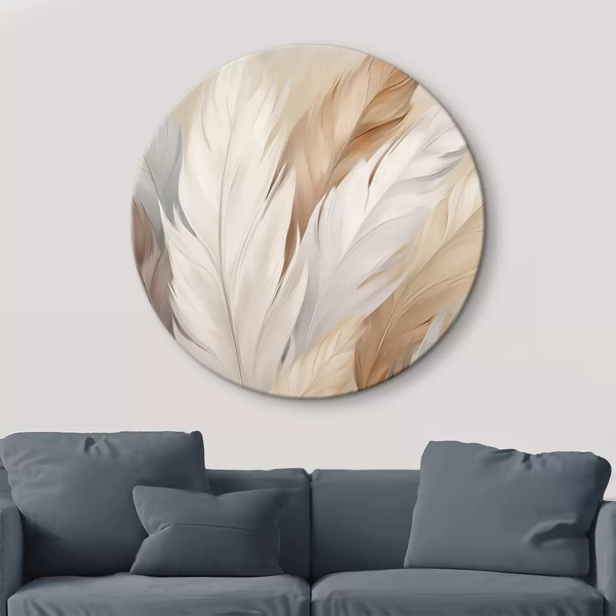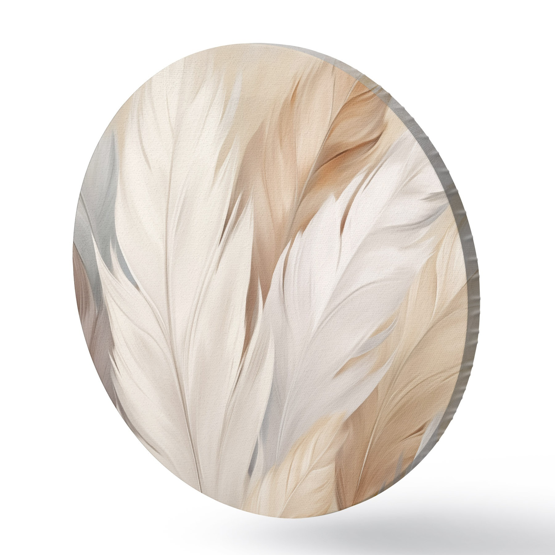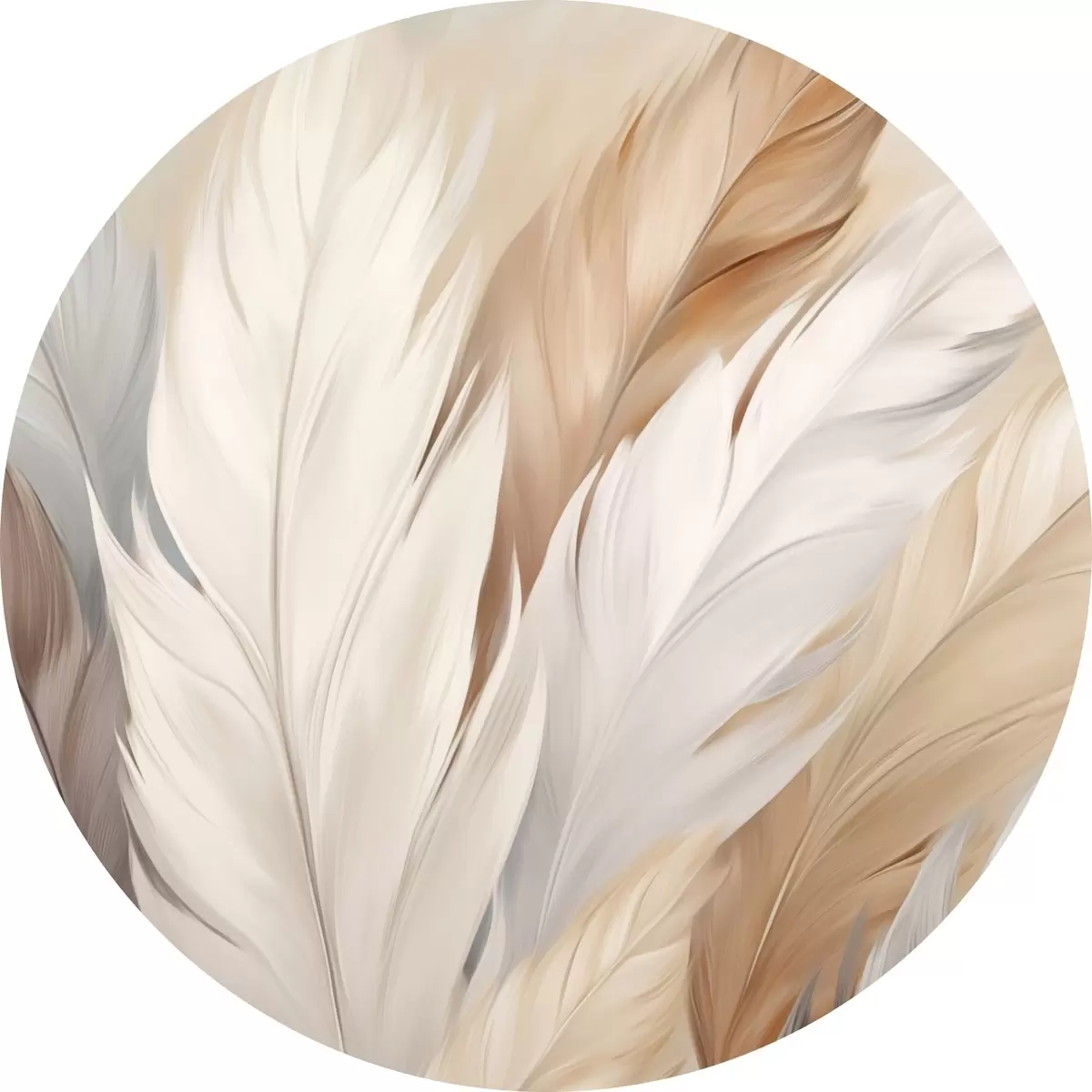Ronde schilderijen Zachte veren in beige en grijstinten Nr r46190