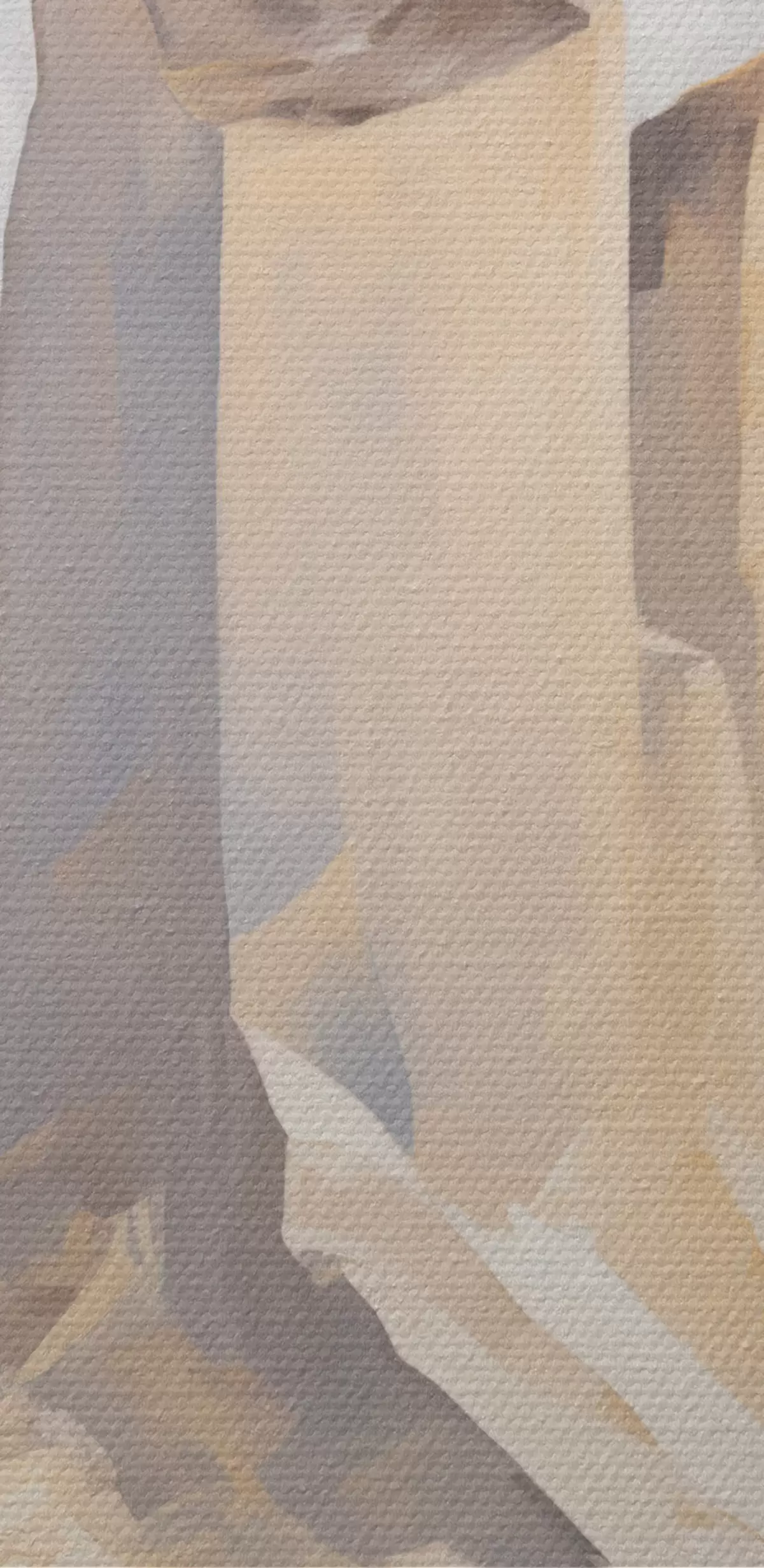 De fijne weving van draden op dit doek lijkt op het oppervlak van professionele schildersdoeken.