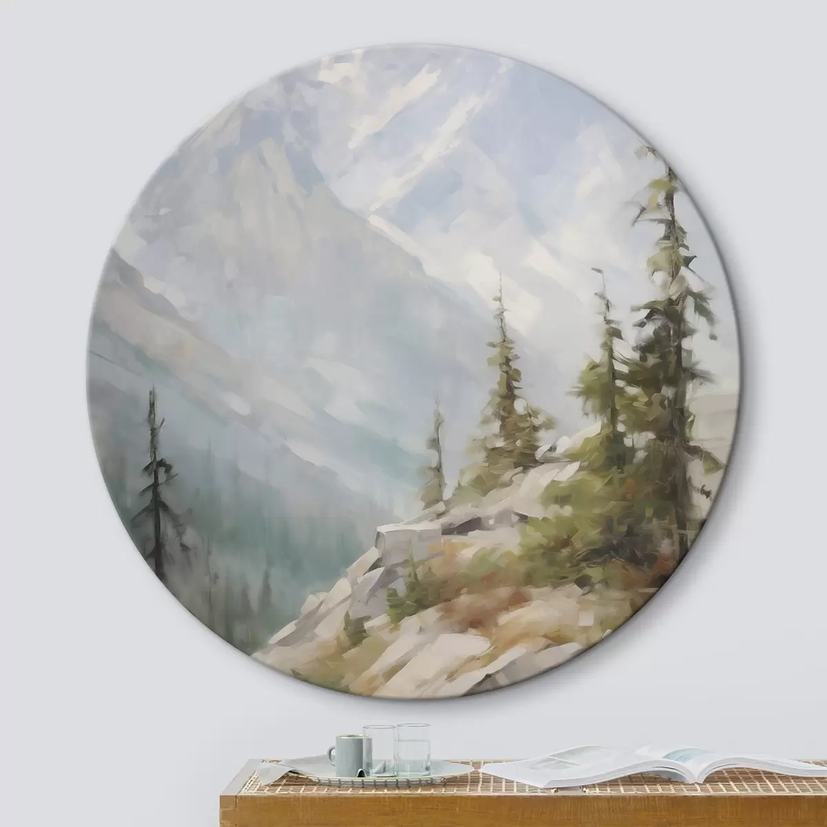 Ronde schilderijen Sparren tegen de achtergrond van bergen r46202