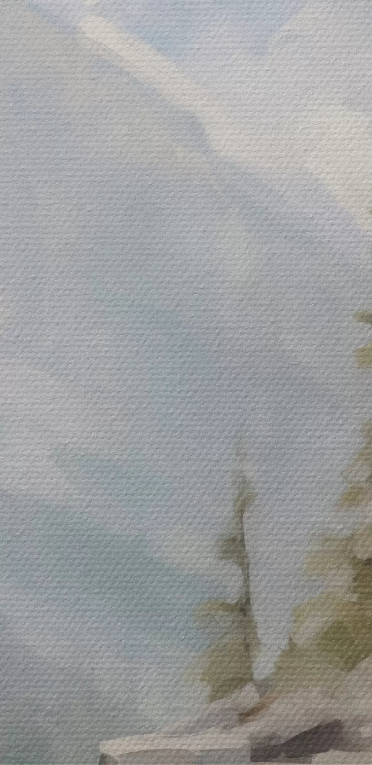 Het schilderij kan direct na ontvangst worden opgehangen. Het schilderij wordt opgespannen op een 2 cm breed houten spieraam.