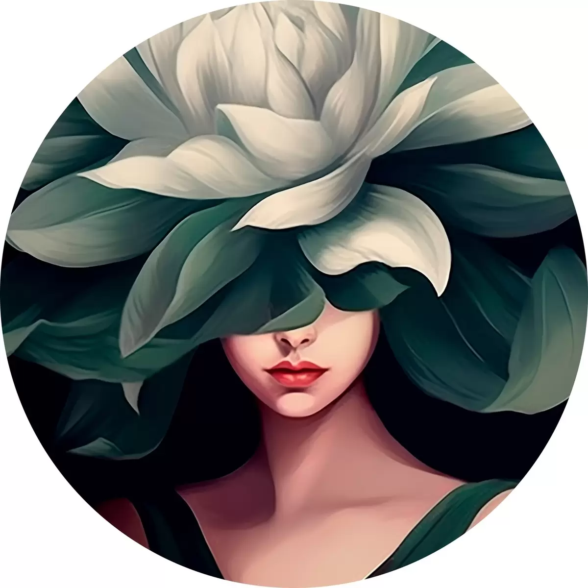 Ronde schilderijen Meisje met een bloem Nr r46207