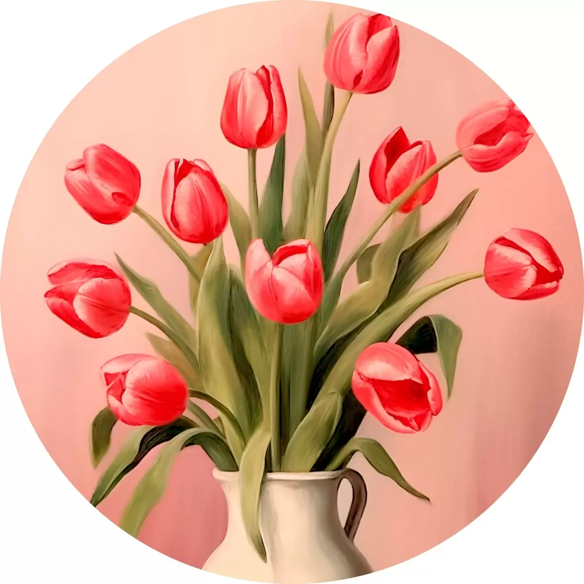 Ronde schilderijen Tulpen in een vaas Nr r46210